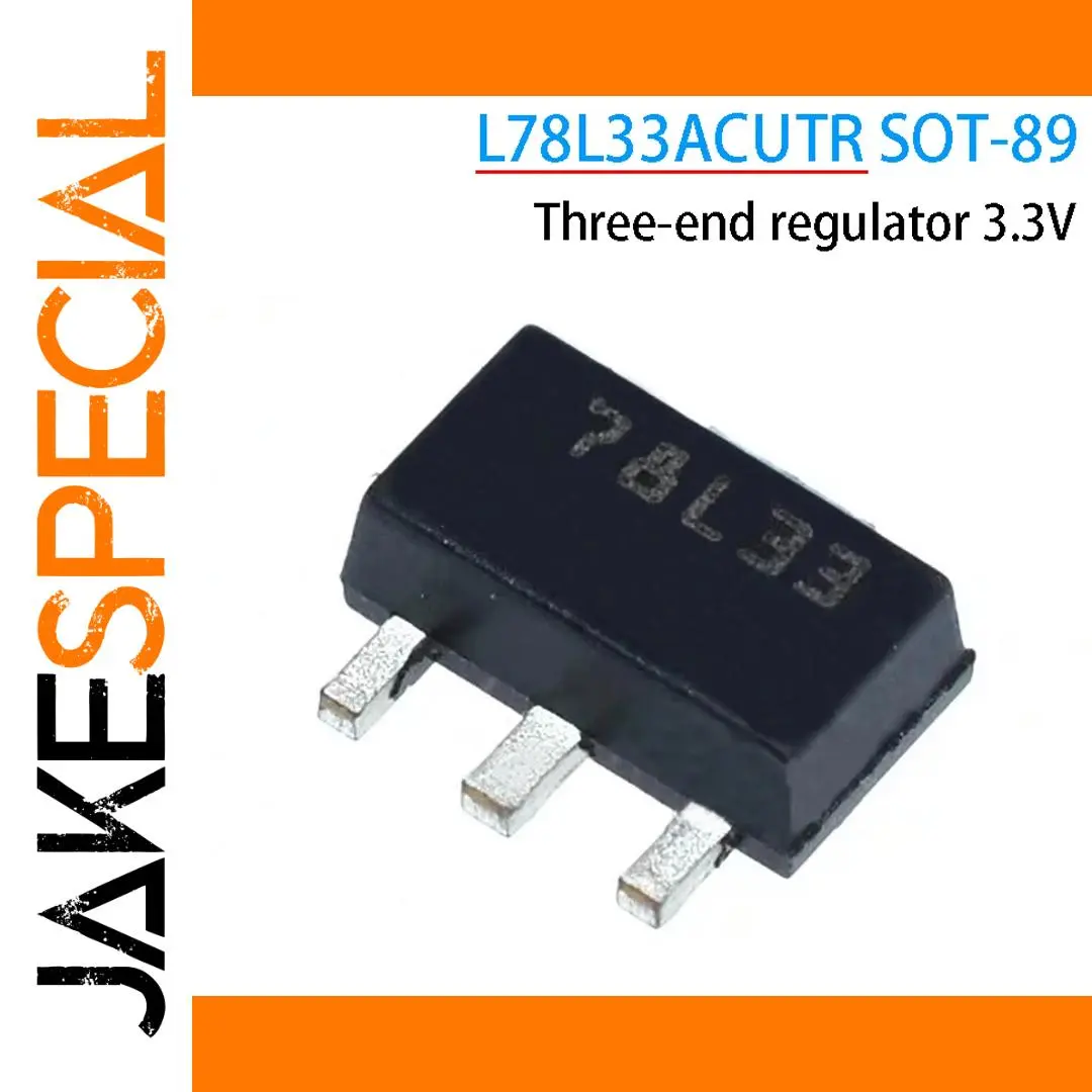 Experience reliable voltage regulation with this pack of 50 new L78L33ACUTR regulators in SOT-89 packages, each providing a stable 3.3V output. Designed for logic circuits and electronic projects, these regulators feature a sleek black rectangular body with a smooth, glossy finish, flat, slightly rounded edges, and three silver-colored leads for easy through-hole mounting. Clear white silkscreen markings indicate the model number and codes, ensuring easy identification. Perfect for electronics enthusiasts and repair professionals, these compact, high-quality regulators deliver dependable performance in various applications, enhancing your circuit’s stability and long-term durability.