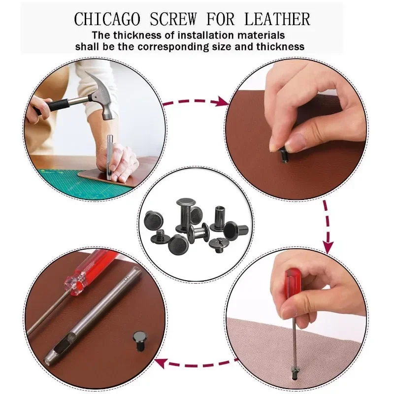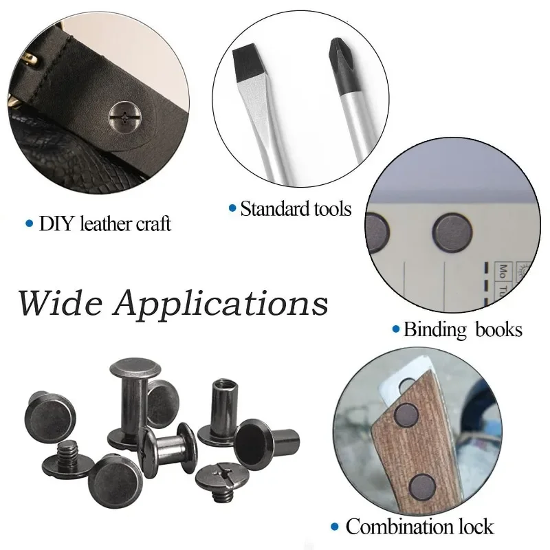 - Simple installation process: punch, align, and screw—suitable for leather, bookbinding, luggage, and other fastening needs.