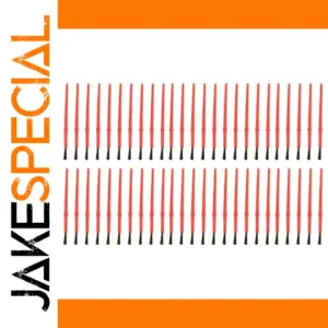 - Set of 50 lightweight brushes, approximately 105mm in length, with ergonomic red plastic handles for comfortable grasp during extended painting sessions.