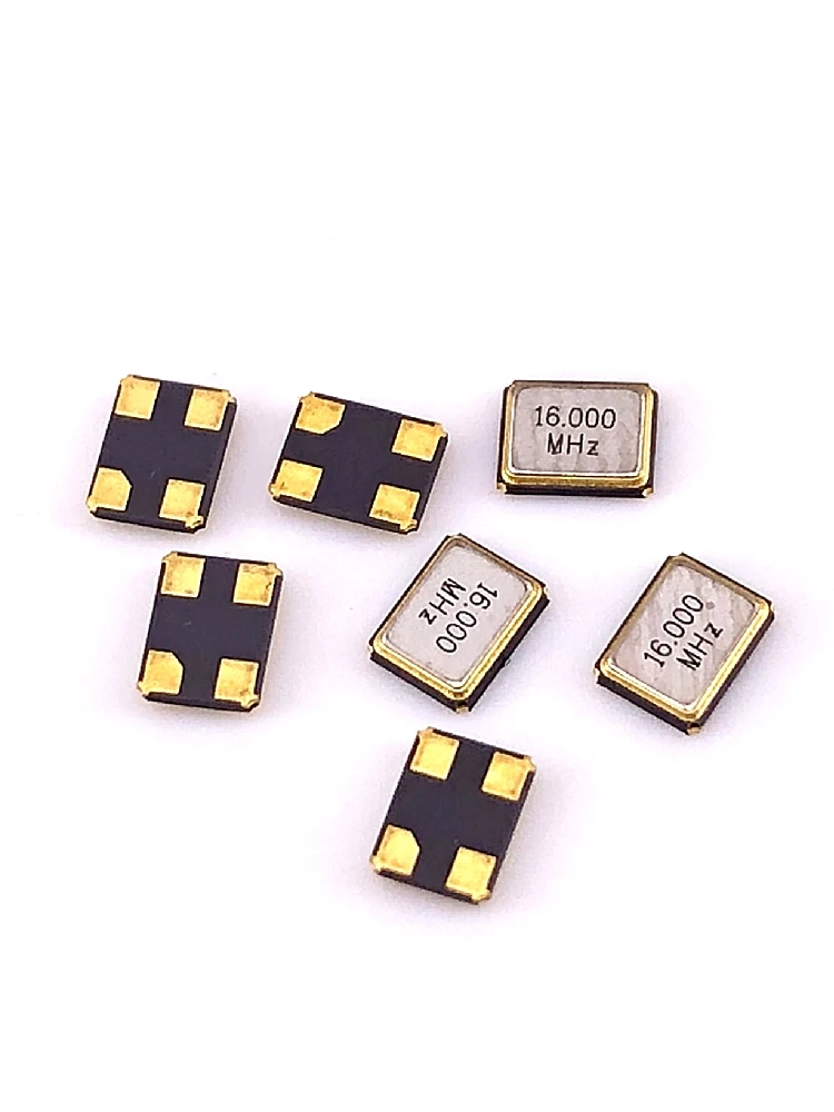 - Each oscillator features a white ceramic or plastic chip with metallic contacts, providing a clean, modern, and professional appearance.