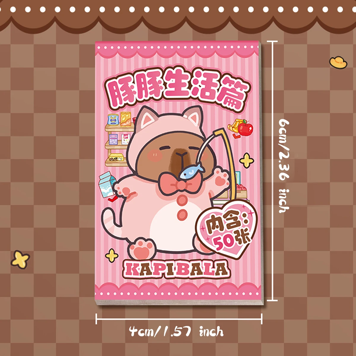 Imagine adding a burst of adorable charm to your belongings with this delightful set of 50 kawaii capybara cartoon stickers. Each sticker showcases an irresistibly cute capybara character in playful outfits and various scenes, from seaside adventures to cozy bedrooms. Crafted from durable synthetic paper, these vibrant stickers feature bold outlines and pastel colors that make them perfect for decorating notebooks, phone cases, or scrapbooks. The portability of this mini collection allows you to carry a stash of fun wherever you go, encouraging creative expression and playful personalization. Whether you're a stationery lover or someone who appreciates whimsical art, this set effortlessly brings cheer into everyday moments and helps you showcase your unique style.