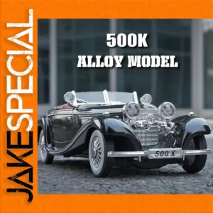 This exquisite 500K luxury retro model car is the perfect addition to your collection, designed for those who appreciate vintage elegance. Finished in deep black with a glossy shine, the car showcases its sleek silhouette and smooth curves. Chrome accents, including a distinctive grille and shiny trims around prominent round headlights, add an authentic touch. Intricate, white wire-spoke wheels with chrome rims create striking contrast, while the convertible top invites a glimpse of the vintage-inspired interior. With various color options available, this model captures the essence of classic luxury, making it an impressive decorative piece or a fun desktop ornament.