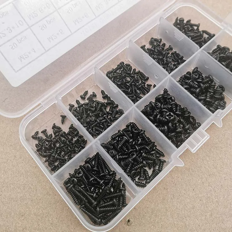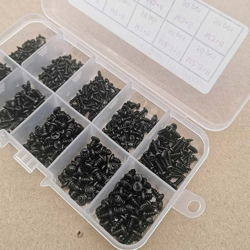 This comprehensive set of 500pcs black screws is indispensable for your electronics and woodworking projects. Featuring a variety of sizes, including M2, M2.3, M2.6, and M3, these self-tapping screws are designed to securely fasten components while providing a sleek, professional look. Made from durable carbon steel, each screw offers reliability in performance and longevity. Whether you’re working on laptops, home repairs, or crafting, visualize having this versatile kit at your fingertips, ready to tackle any task effortlessly. This kit not only meets your immediate needs but also allows you to stock up for future projects.