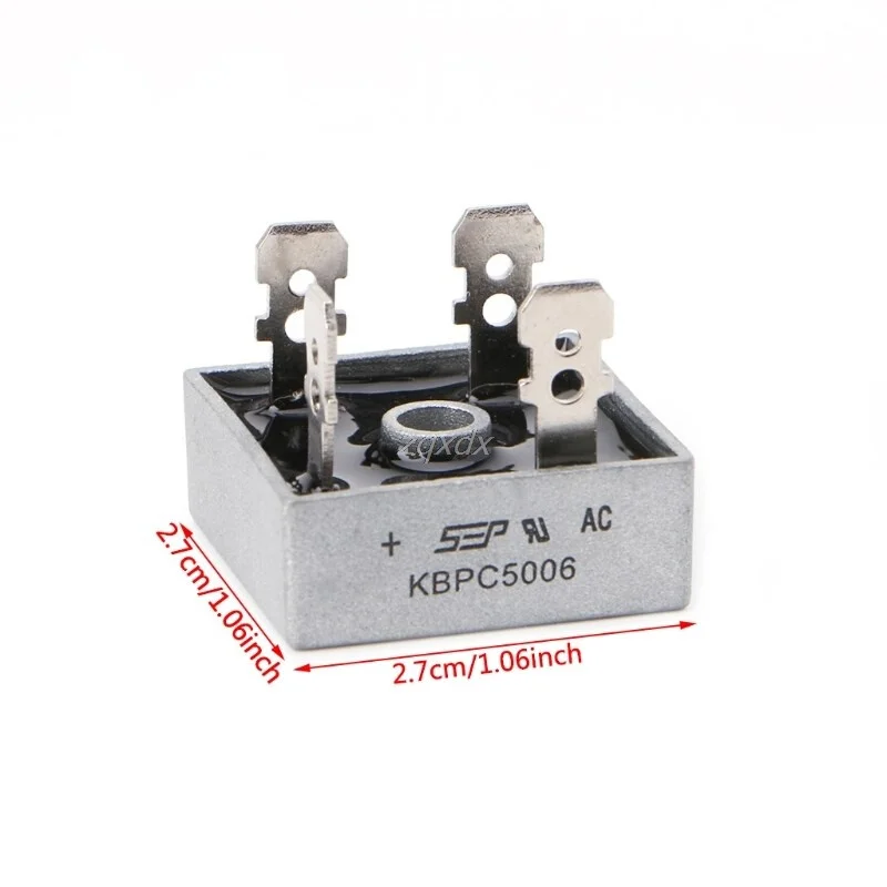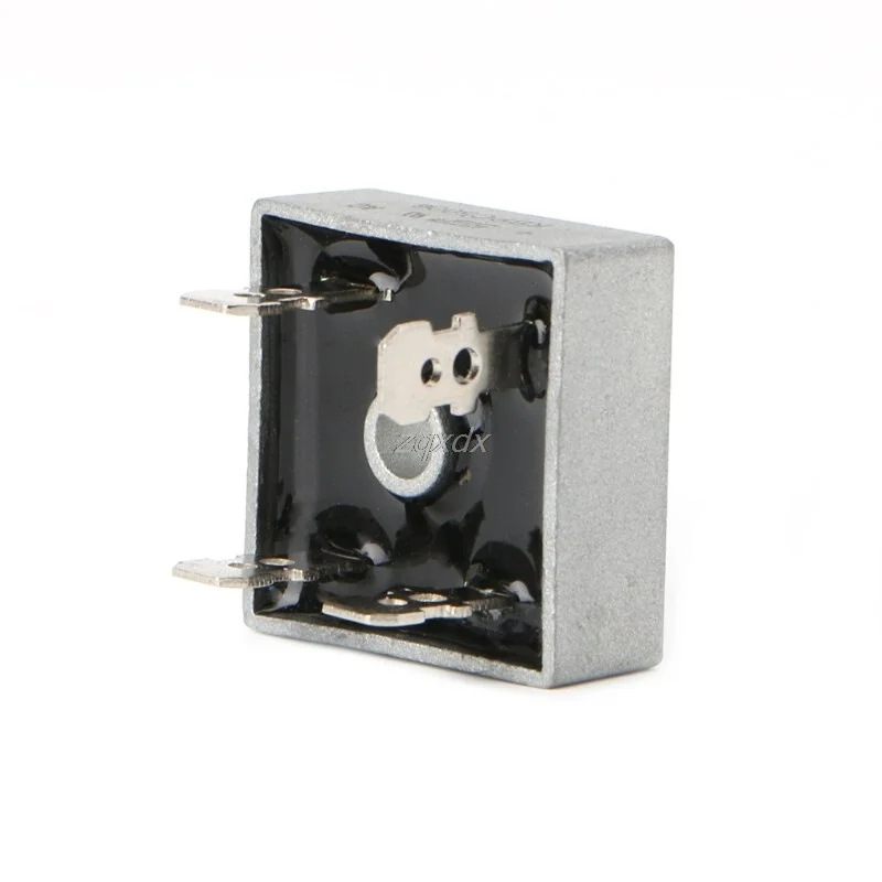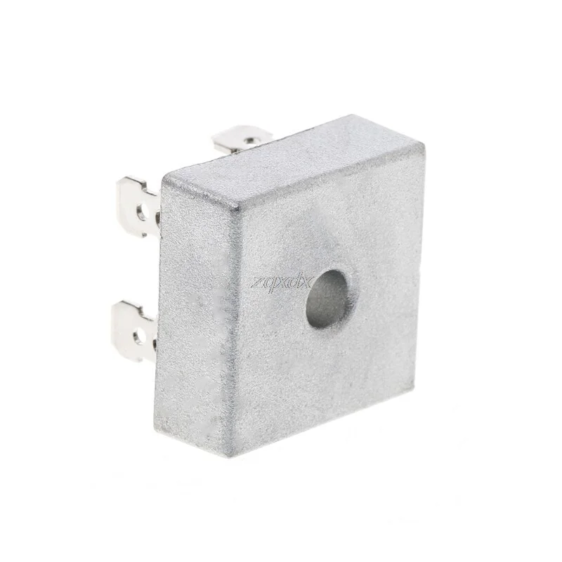 Experience reliable high-current conversion with this 50A Power Bridge Rectifier featuring a durable metal case. Designed for switching applications, this new diode bridge offers robust construction and efficient performance for converting AC to DC in demanding electronic setups. Its sleek, metallic rectangular enclosure ensures durability and heat dissipation, while the four vertical terminals provide secure electrical connections. Perfect for professional or enthusiast use, this power rectifier guarantees steady current handling up to 50A, making it an essential component for power supplies, motor drives, and high-current circuits. Trust in this high-quality, switch-type rectifier for your most demanding electronic projects.