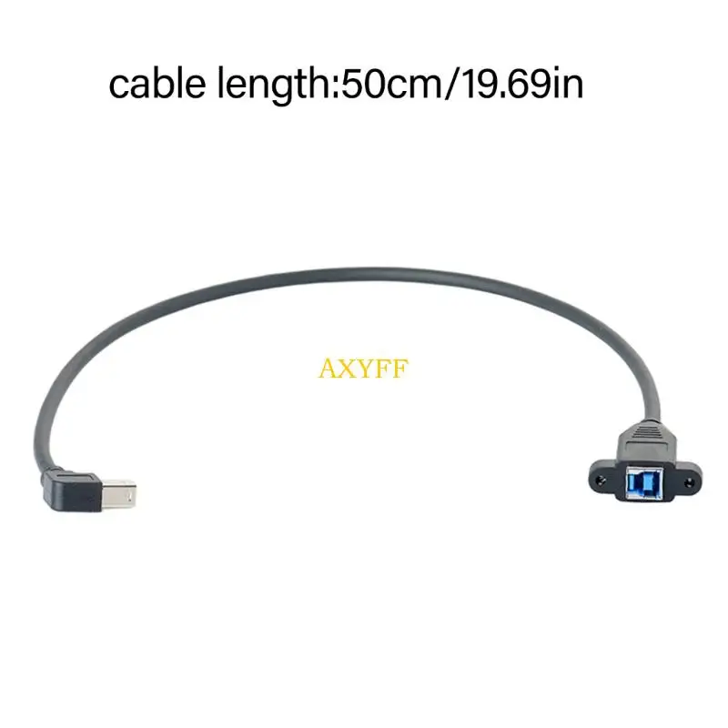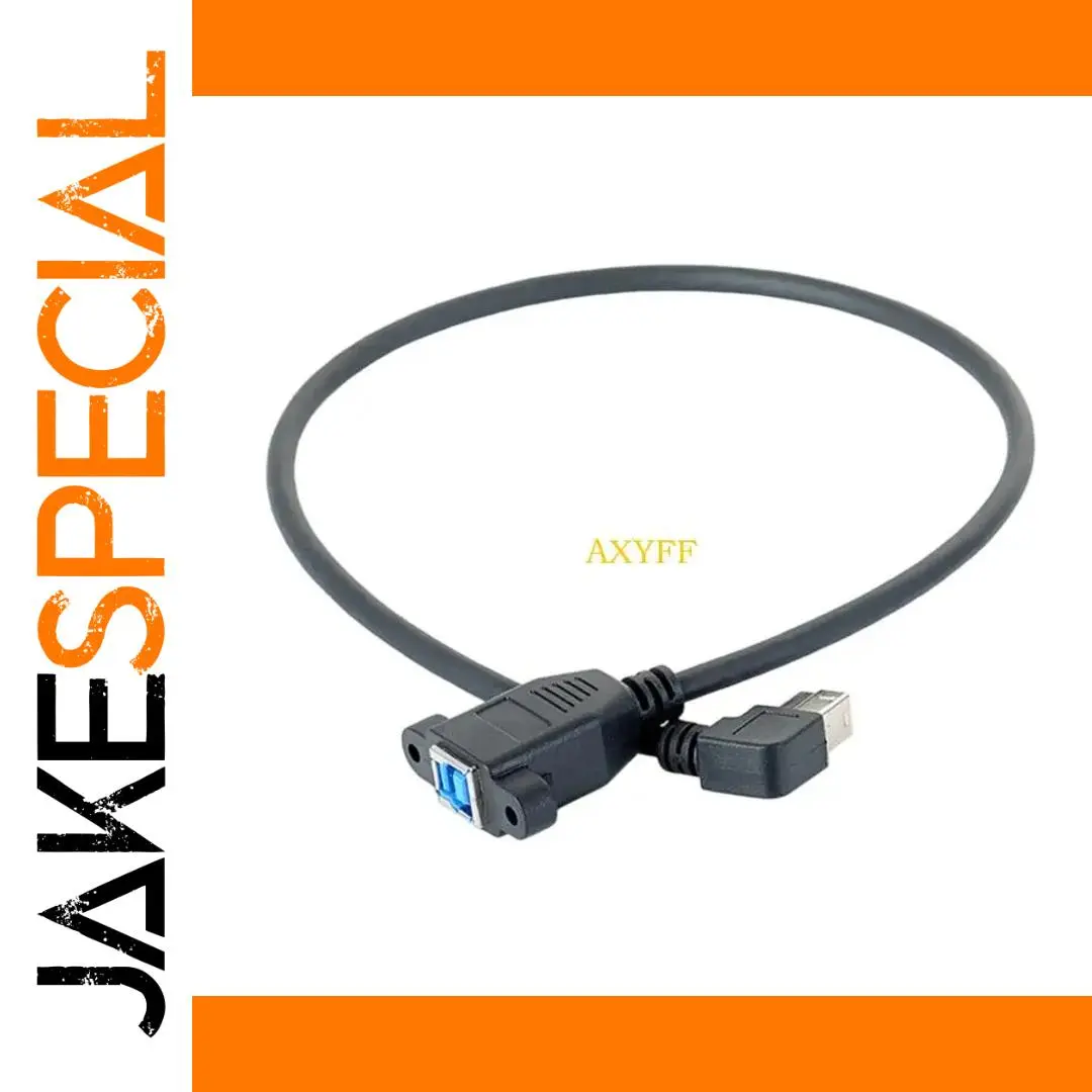Enhance your professional setup with this 50cm USB B male to panel mount female extension cable, supporting fast data transfer speeds up to 5Gbps and backward compatibility with USB 2.0/1.1 devices. Featuring aluminum foil shielded conductors for minimized interference, right-angled connectors, and a durable PVC jacket, it ensures a secure, space-saving, and reliable connection for high-bandwidth devices such as printers, industrial cameras, and sound interfaces. Designed for fixed or mobile installations, this rugged cable with screw mount stability provides seamless plug-and-play connectivity, combining durability with a sleek, functional aesthetic ideal for industrial or laboratory environments.