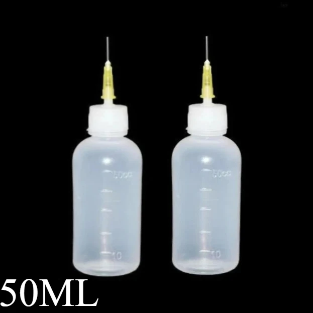 - The bottles are transparent plastic with a 50ml capacity, perfect for precise liquid measurement and easy content visibility during repairs.