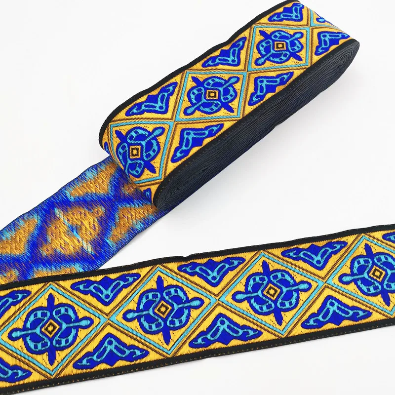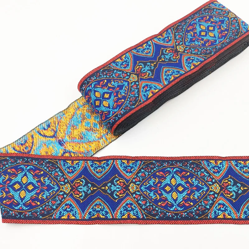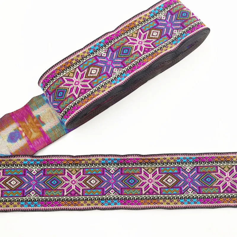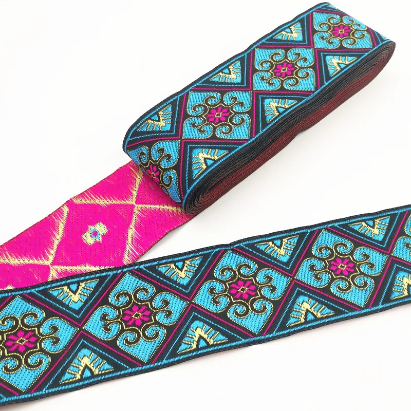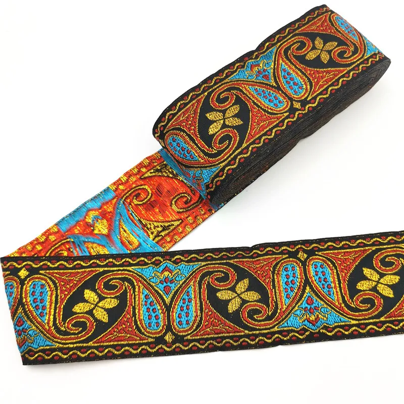 Experience the vibrant allure of this 7 Meters 50mm Vintage Ethnic Embroidery Lace Ribbon. Perfectly suited for your DIY projects, this splendid lace ribbon showcases intricate geometric and floral patterns in a range of bright and bold colors, including yellows, reds, pinks, blues, and golds. Made from 100% polyester, it combines durability with a soft sheen that beautifully enhances any decoration. Measuring 2″ wide and 7 meters long, this lace trim is perfect for embellishing clothing, bags, or crafting unique home accessories. Imagine the stunning items you can create, making every piece truly your own.