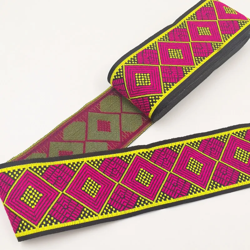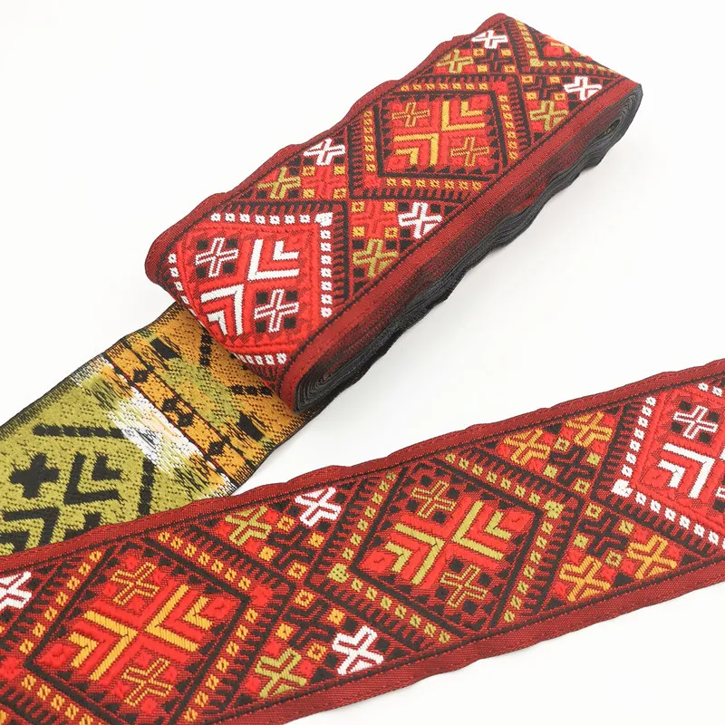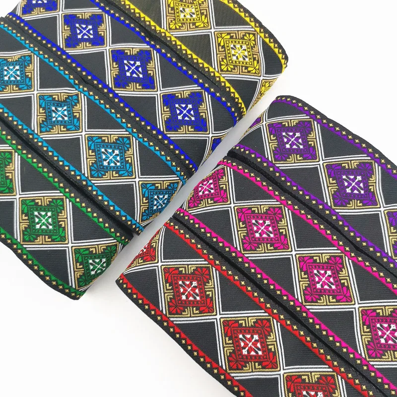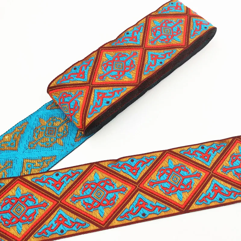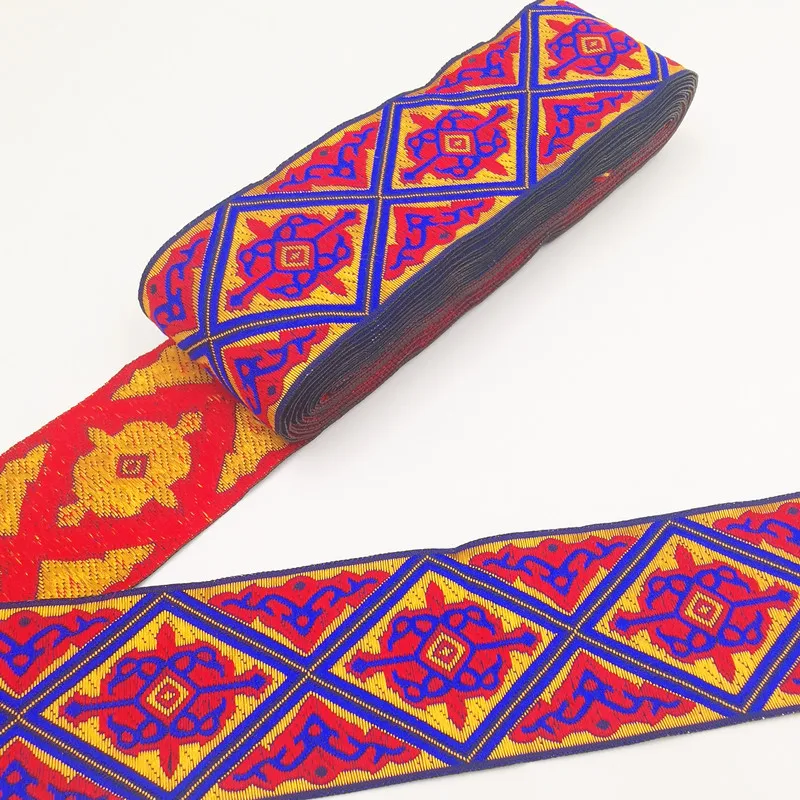 Experience the vibrant allure of this 7 Meters 50mm Vintage Ethnic Embroidery Lace Ribbon. Perfectly suited for your DIY projects, this splendid lace ribbon showcases intricate geometric and floral patterns in a range of bright and bold colors, including yellows, reds, pinks, blues, and golds. Made from 100% polyester, it combines durability with a soft sheen that beautifully enhances any decoration. Measuring 2″ wide and 7 meters long, this lace trim is perfect for embellishing clothing, bags, or crafting unique home accessories. Imagine the stunning items you can create, making every piece truly your own.