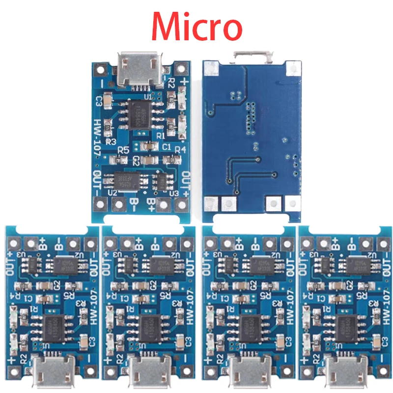 This set of five dual-function 18650 lithium battery charger modules features both Type-C and Micro USB inputs, designed to meet your charging needs seamlessly. Each compact board measures 2.6 x 1.7 cm and operates at an input voltage of 5V, with a charging cut-off voltage of 4.2V ± 1%. Experience efficient charging with a maximum charge current of 1000mA (1A), while built-in protections safeguard against over-discharge at 2.5V and overcurrent at 3A. Red and green LED indicators provide clear charging status. Upgrade your DIY projects with these essential charging modules today!