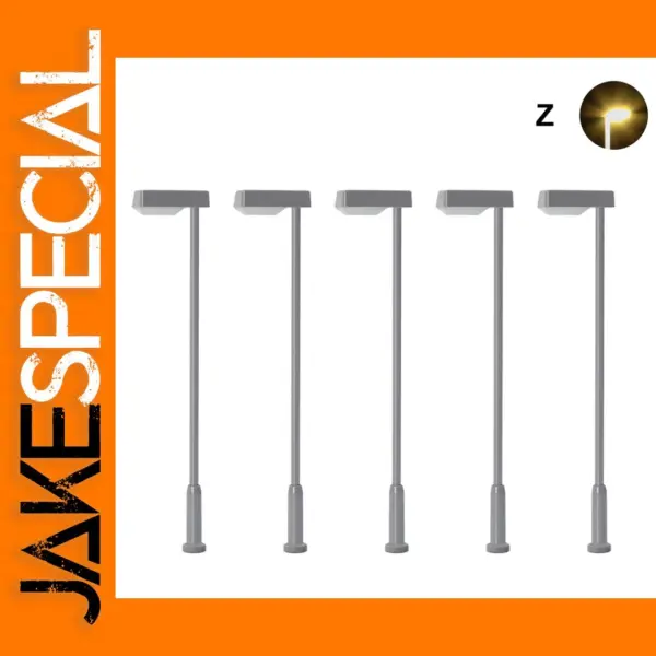 Imagine enhancing your model railway or building layout with these realistic street lights, adding a warm glow and inviting atmosphere. Crafted from durable metal, each lamp is equipped with warm white LEDs that emit a cozy light, perfect for creating a charming nighttime scene. Easy to install and compatible with 3V power supplies, these lamps are ideal for Z scale models at 1:220 scale. You’ll receive five complete lamps along with five resistors, allowing you to set up a beautifully illuminated street scene effortlessly. Whether you're an enthusiast or a collector, these street lights are a fantastic addition that will bring your miniature world to life and make your display more authentic and captivating.
