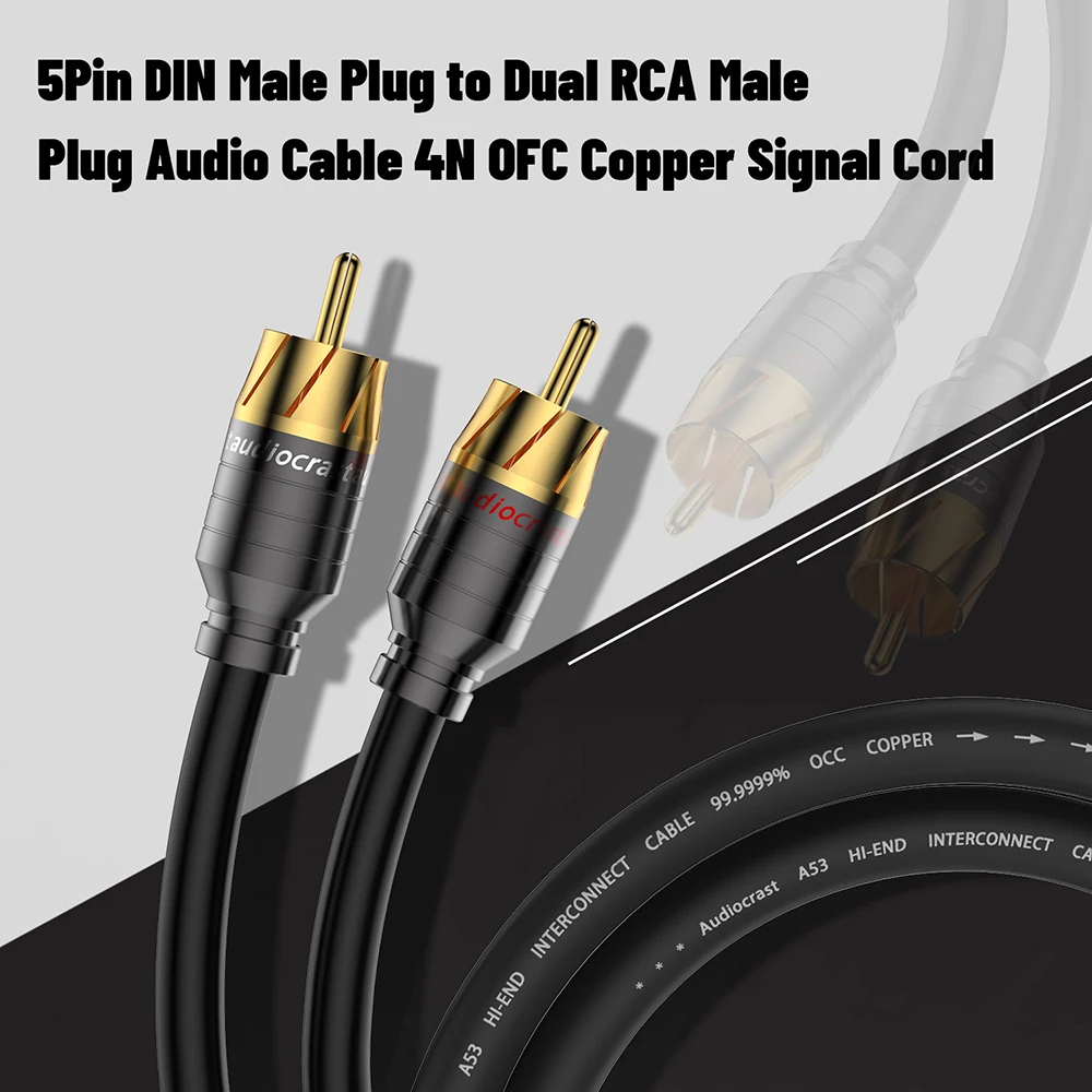 Enhance your stereo setup with this high-quality 5-pin DIN male to dual RCA male audio cable, featuring durable 4N OFC copper conductors with a core configuration of 40 × 0.08mm. The sleek, approximately 6.2mm diameter cable is insulated with PE and twisted in blue and white cores for optimal noise reduction and signal clarity. Its polished silver connectors are gold-plated for superior conductivity and corrosion resistance, including a sturdy cylindrical DIN connector and rounded, tapered RCA plugs with grip rings. Available in lengths of 0.5m, 1m, 1.5m, 2m, and 3m, it’s perfect for connecting DVD players, amplifiers, and turntables to your stereo system, delivering reliable, high-fidelity audio performance.