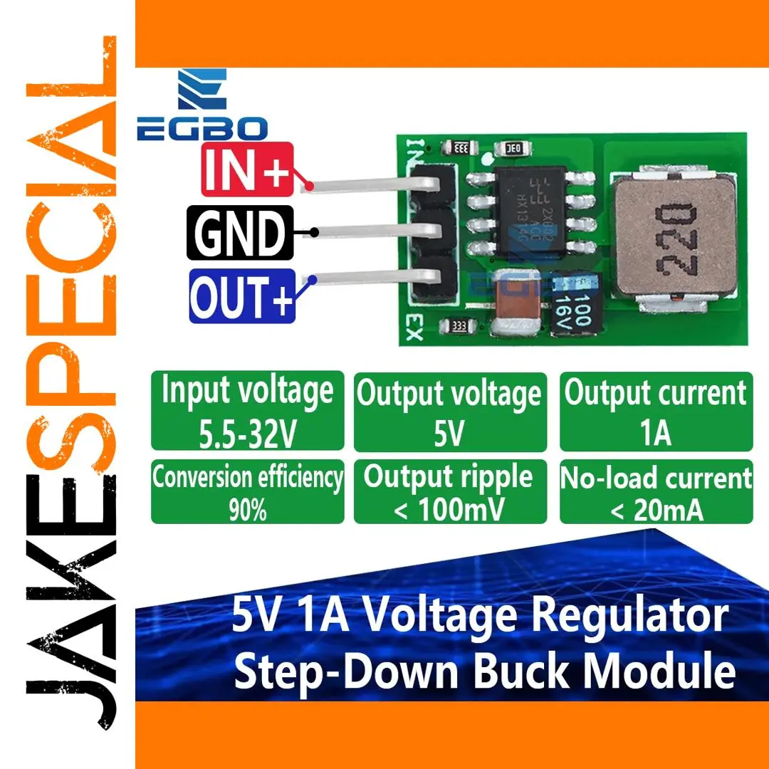 - The module operates with input voltages from 5.5V to 32V, providing a stable 5V output with ±0.1V precision, suitable for powering microcontrollers and other sensitive electronics.
