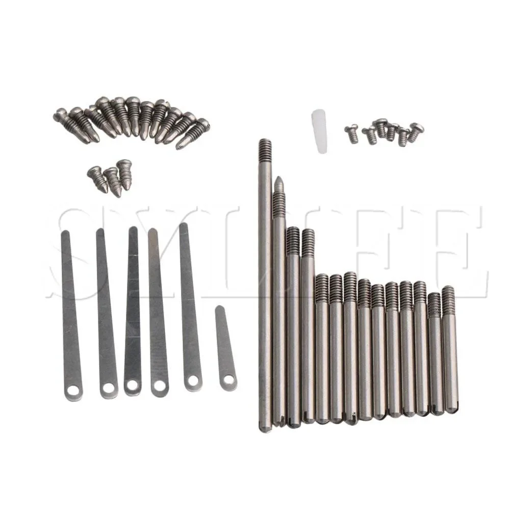 - Supplies six spring leaf screws designed with a sleek, flat profile for optimal spring tension and instrument response enhancement.