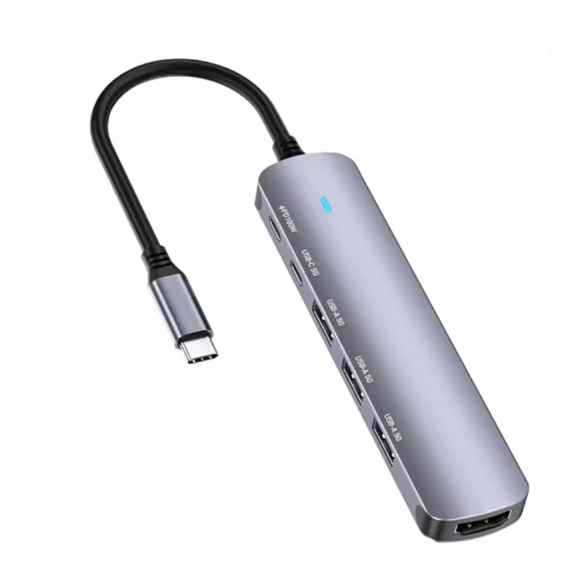 Imagine effortlessly expanding your notebook’s capabilities with this elegant, compact Type-C hub. Crafted from durable aluminum alloy in a sophisticated grey finish, this dock boasts a slim profile of approximately 28.8 mm in height and 11.6 mm in thickness, making it easy to carry anywhere. Its modern cylindrical design features precisely arranged ports: a 4K 60Hz display output, a USB-C 5G port, three USB-A 5G ports, and a Power Delivery 3.0 port supporting up to 100W. The short black cable with a metallic USB-C connector seamlessly connects your device, ensuring high-speed data transfer, reliable charging, and expanded connectivity. This hub combines style, durability, and functionality for your advanced tech setup.
