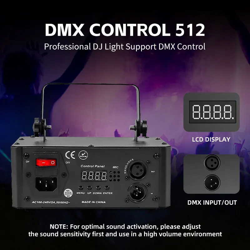 - Built-in DMX and wireless remote control support enable easy management of multiple modes like sound activation, master-slave synchronization, and console control.