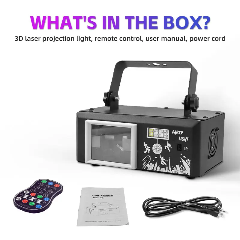 - Coverage up to 50 square meters makes it suitable for clubs, parties, bars, and indoor venues, delivering vibrant laser effects across large areas.