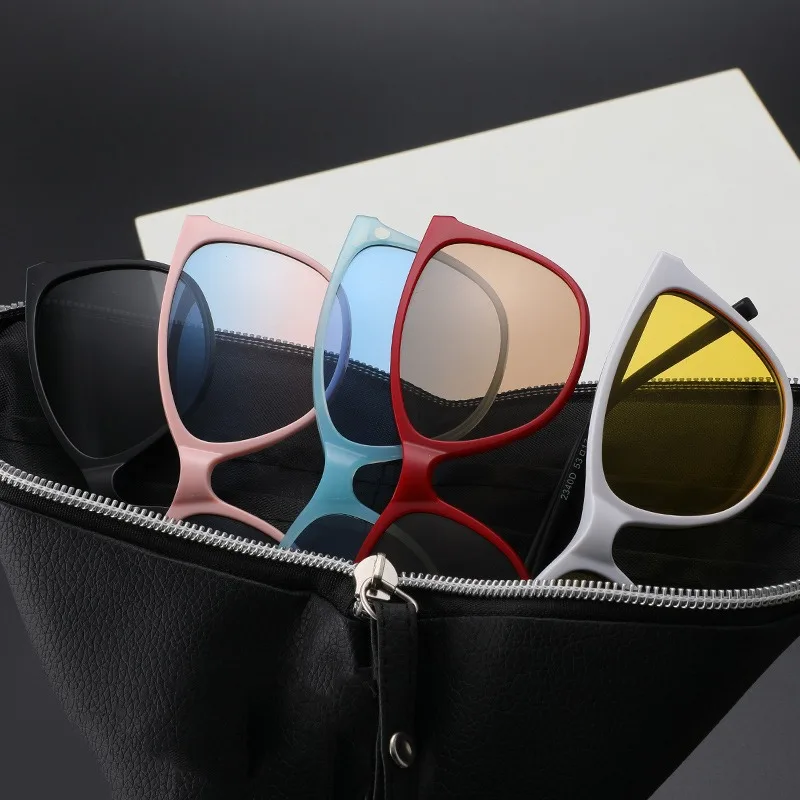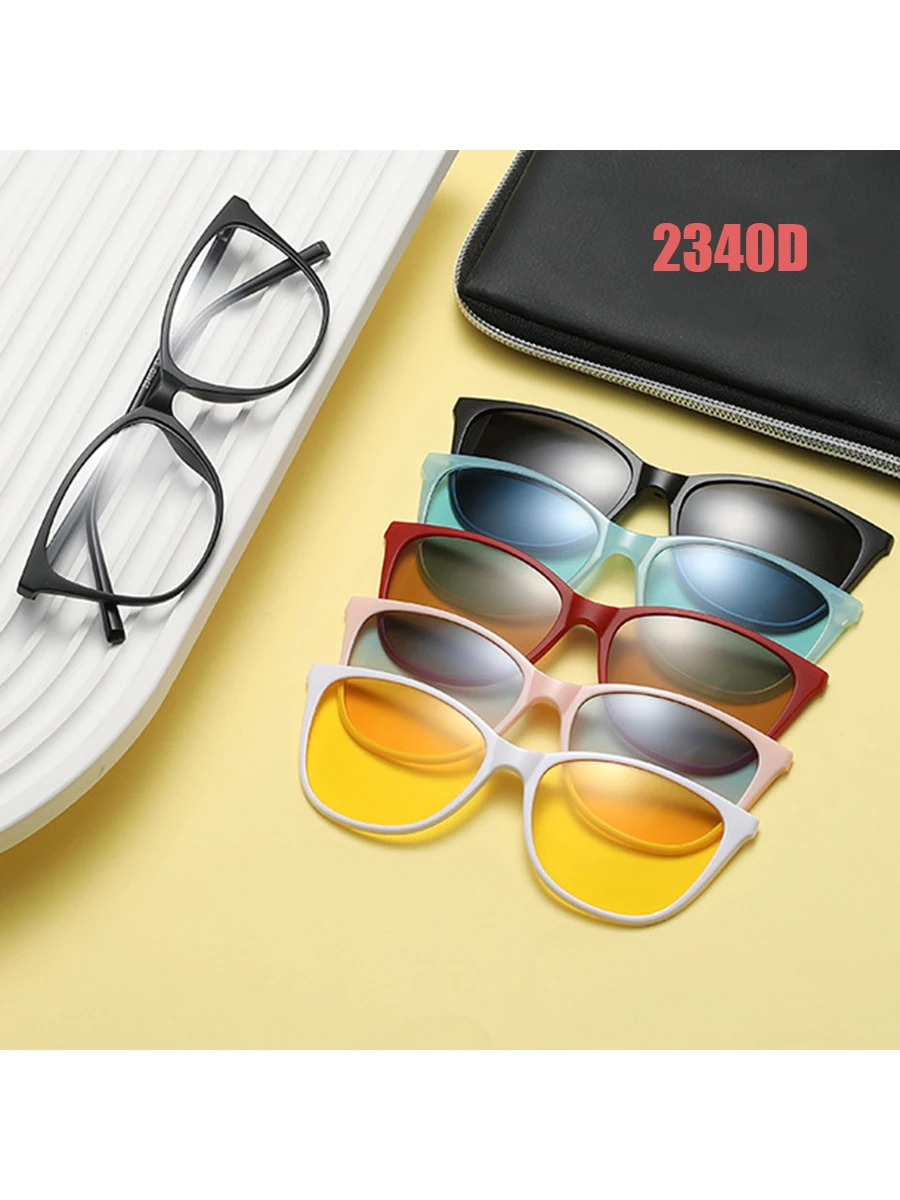 Experience effortless style with this innovative 6-in-1 spectacle frame designed for women. Crafted from lightweight TR-90 material, it combines trendy fashion with practicality. The frame comfortably fits adult users and offers a sleek, modern look suitable for outdoor activities. Its magnetic clip-on sunglasses make switching between styles quick and easy, giving you five different polarized lenses for versatile use. Whether you're out in the sun or need eye protection during computer work, this product adapts to your lifestyle. Imagine how convenient it is to have multiple sunglasses in one stylish frame, ready to wear anytime. Elevate your eyewear game with this smart, functional design that blends fashion and functionality seamlessly.