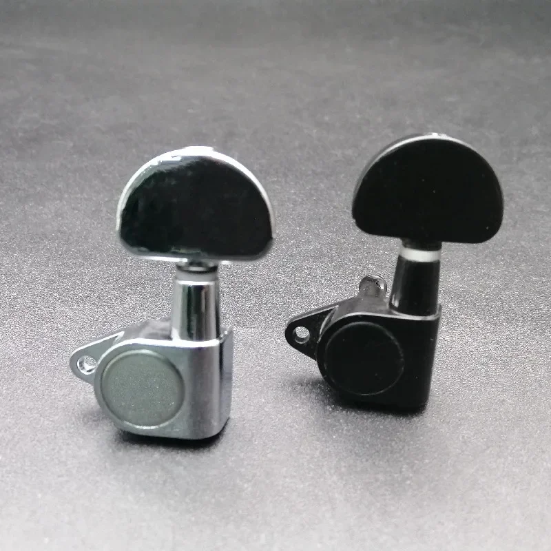 Elevate your guitar tuning experience with this high-quality set of six sealed-gear tuning pegs designed for both acoustic and electric guitars. Available in sleek chrome and elegant black finishes, these tuners combine durability with a modern aesthetic. The large semicircular buttons provide comfortable grip and precise control during tuning adjustments. The high-precision gear ratio of 1:15 ensures accurate pitch stability, whether you are performing or practicing. Crafted from durable metal, these tuning pegs are built to last, offering reliable performance over time. Mounting screws, ferrules, and washers are included, making installation straightforward. Perfect for both right-handed and left-handed guitars, they help you achieve professional sound quality with a clean and streamlined look.