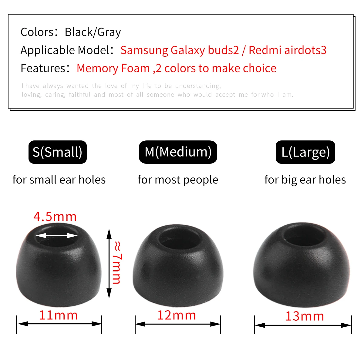 Transform your listening experience with this set of 6 Memory Foam Ear Tips designed specifically for your earbuds. Available in sleek Black and Gray colors, these ear tips ensure a snug fit for various models, including Samsung Galaxy Buds2 and Redmi AirDots3 Pro. Crafted from premium memory foam, their slow rebound feature allows them to conform naturally to the shape of your ear canal, providing exceptional comfort during long listening sessions. Whether you're running, cycling, or simply relaxing, the passive noise reduction ensures you enjoy your music without distractions. Say goodbye to earbud fall-off and embrace a new level of acoustic bliss.