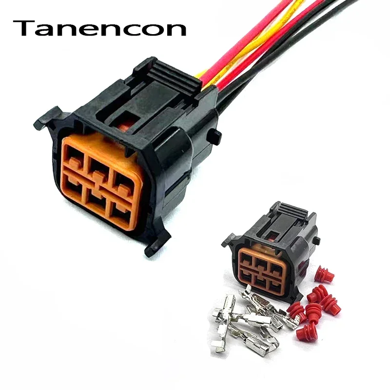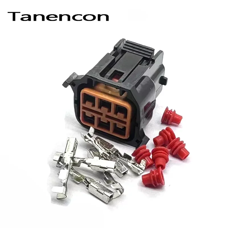 This set of 6-pin waterproof connectors is the perfect solution for your automotive lighting needs. Designed specifically for models such as Elantra, K3, and K5, these connectors feature a robust black plastic housing with an inner vibrant orange component that securely accommodates pins for electrical connections. With an integrated locking mechanism, you can trust that these connectors will perform reliably even under challenging conditions. The package offers flexible purchasing options, allowing you to buy 1 set, 5 sets, or 10 sets based on your requirements. Each connector is equipped with waterproof grommets to keep your connections safe from moisture and contaminants, ensuring long-lasting performance.