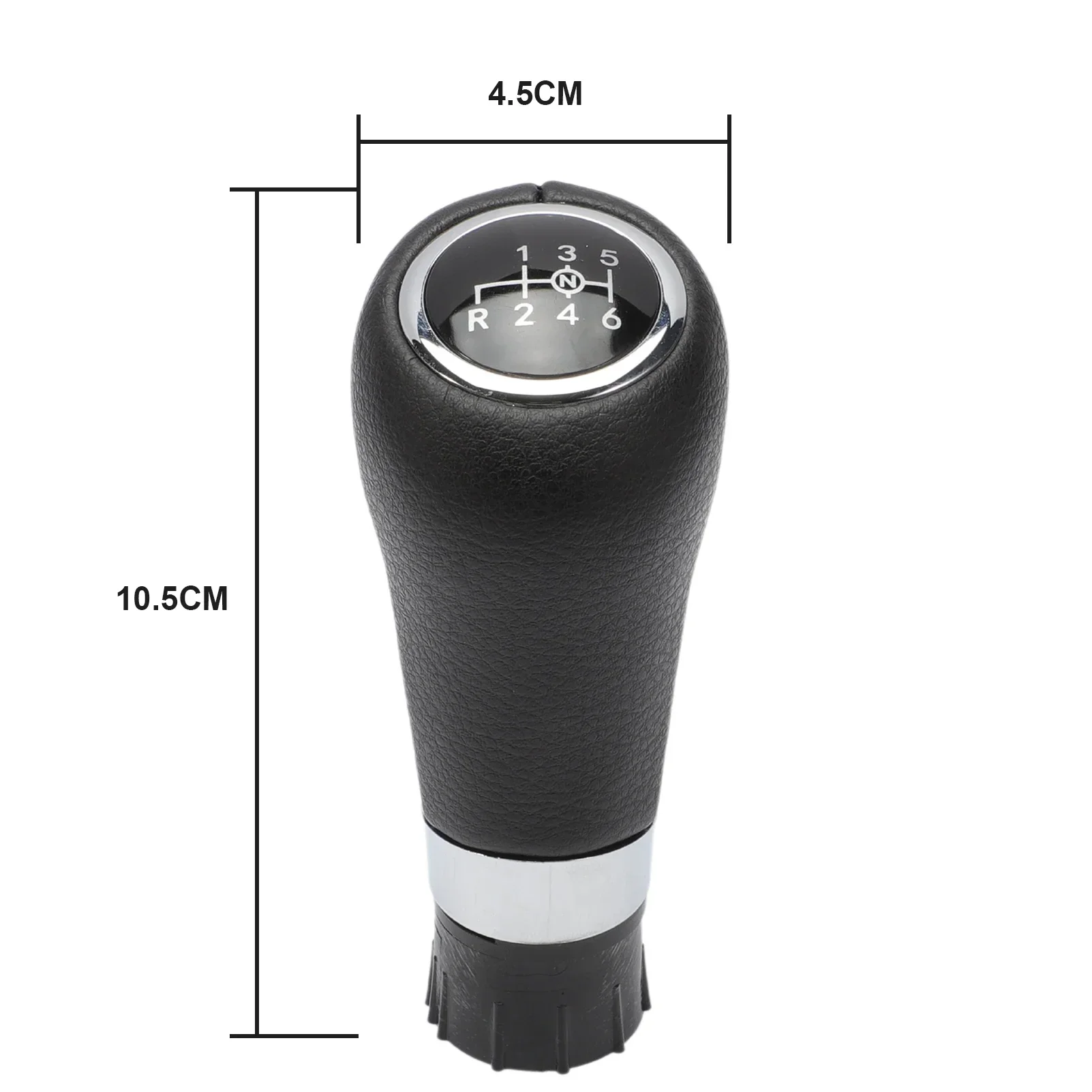 Transform your driving experience with this 6 Speed Manual Gear Shift Knob, specially crafted for the Mercedes Benz Classe A W169. Its ergonomic design, predominantly black with a textured leather-like finish, offers a comfortable grip that enhances handling and control during driving. The polished chrome cap at the top, featuring a clear gear pattern, not only adds a sleek look but also ensures ease of use. This replacement knob fits perfectly with a 14.5mm diameter, making installation straightforward without the need for modifications. Elevate your vehicle's interior while enjoying a safer, more enjoyable ride.