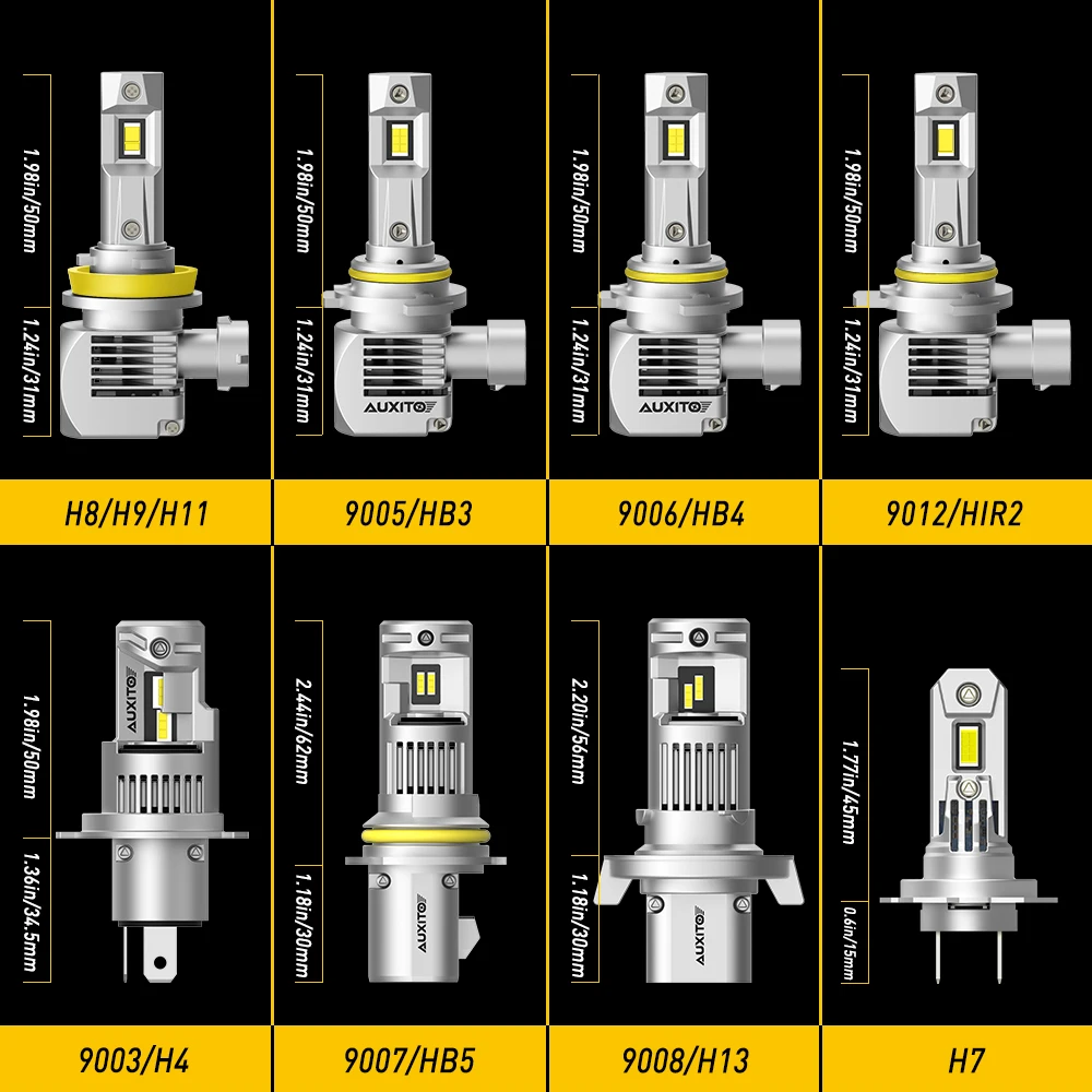 - Compatible with a wide range of socket types including H4/9003, H7, H8, H9, H11, 9012 (HIR2), HB3/9005, HB4/9006, H13, H8, and H9, enabling universal fit for most vehicles and motorcycles requiring LED headlight upgrades.