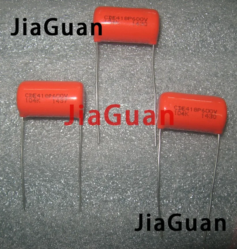 This set of 10 high-quality orange film capacitors features a voltage rating of 600V and a capacitance of 0.1µF with a ±10% tolerance and a construction code of 104K. Measuring approximately 28mm in length, 15mm in width, and 15mm in height, with a 25mm lead spacing, these MKP (metallized polypropylene) capacitors are ideal for audio, high-frequency, and professional electronic applications. Their bright orange, glossy exterior boasts a sleek, modern aesthetic, combining durability with a vibrant visual appeal. Designed for reliable performance in demanding circuits, these capacitors are perfect for enhance your electronic projects with precision and confidence.