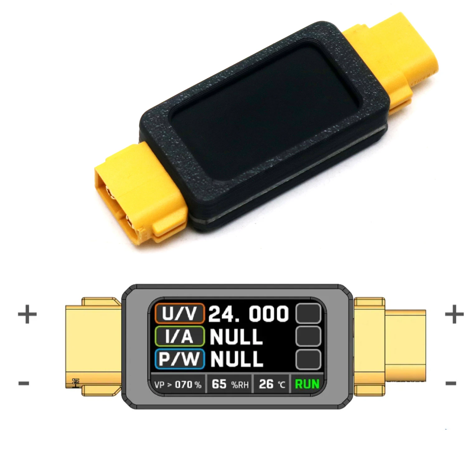 Experience the ultimate control with this this bidirectional power meter featuring a sleek, rectangular design and a vivid 1.47-inch HD color display. Its durable textured black casing combines modern aesthetic with rugged function, perfect for monitoring RC batteries, charging, and discharging. The bright, color-coded labels for voltage in orange, current in green, and power in blue add clarity, making it easy to read at a glance. Flanking connectors in bold yellow XT30 or XT60 styles provide a striking contrast, enhancing overall aesthetics. With its compact dimensions of 68 × 23.5 × 13 mm, this device seamlessly integrates into your electronic setup. It’s not just about looks; it offers accurate, reliable data to optimize your projects and ensure safety.