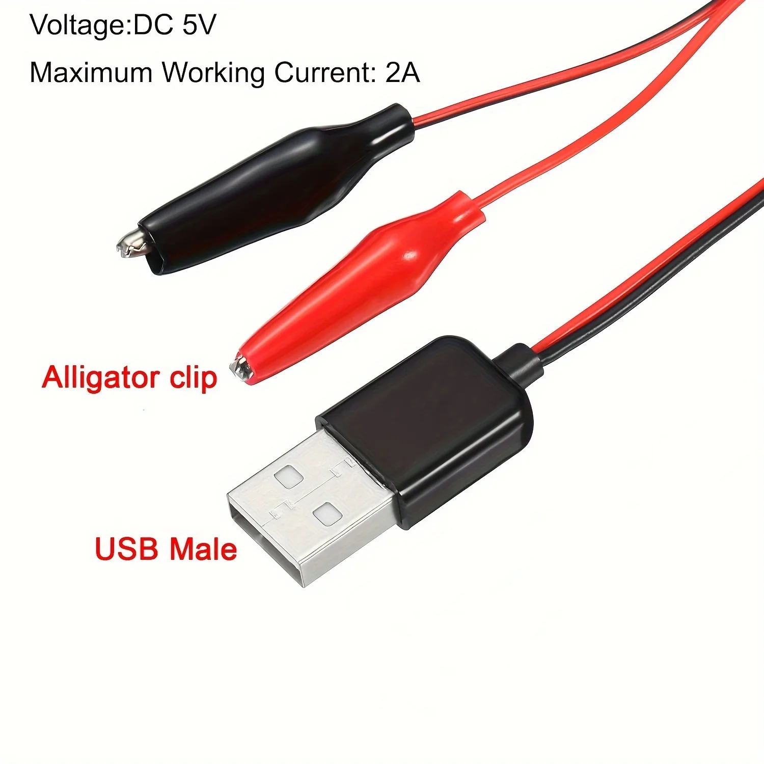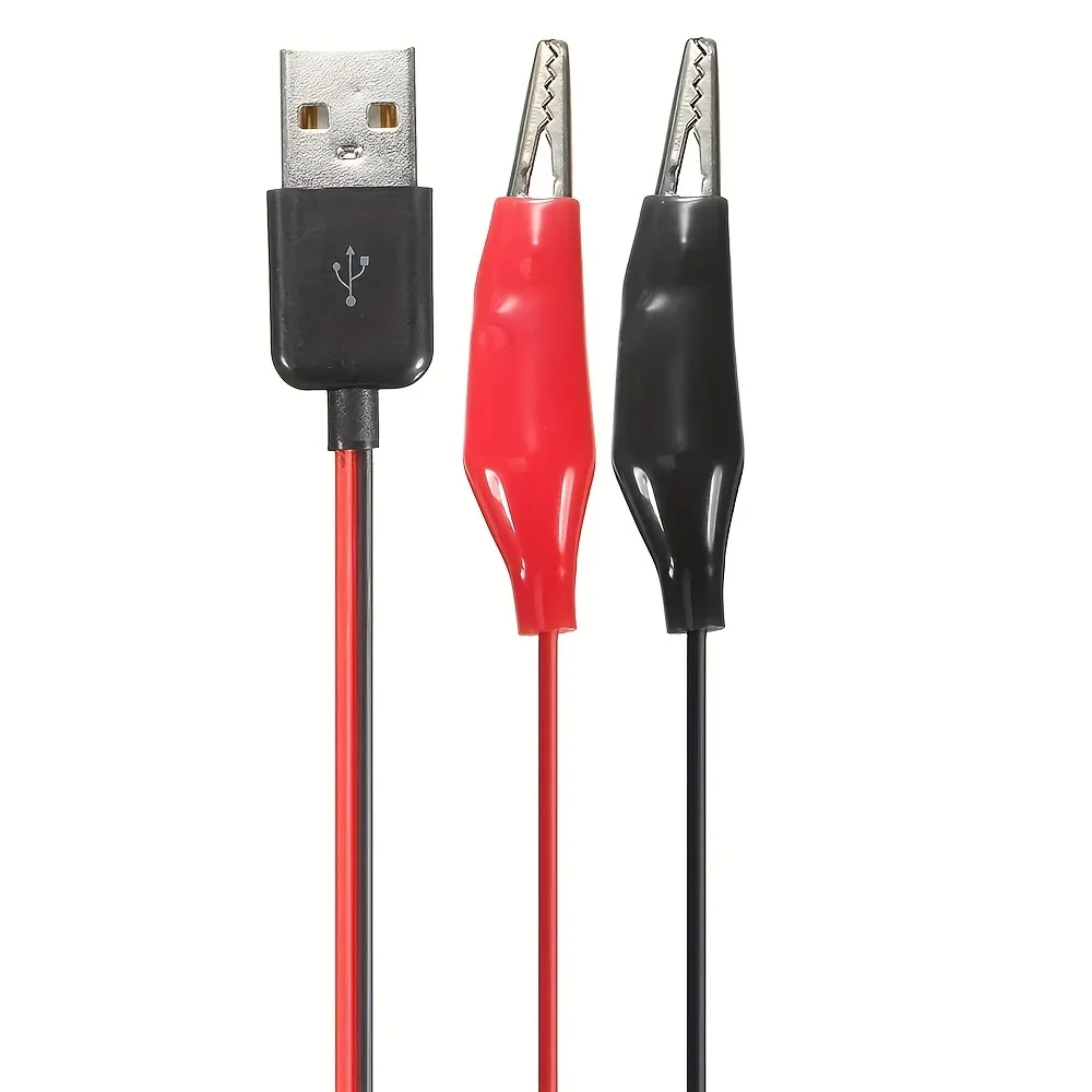 This 60cm test wire features a durable USB Type-A male connector with a small USB symbol and two color-coded alligator clips—red and black—for precise circuit testing and charging. The metallic crocodile clamps have serrated jaws for a secure grip on wires or terminals, providing a reliable connection for electrical testing and voltage measurement. Encased in flexible insulated sheathing, the wires are neatly twisted to ensure organization and ease of use. Designed for adult collectors and electrical enthusiasts, the rugged construction and vibrant color accents make it perfect for laboratory, repair, or hobbyist applications.