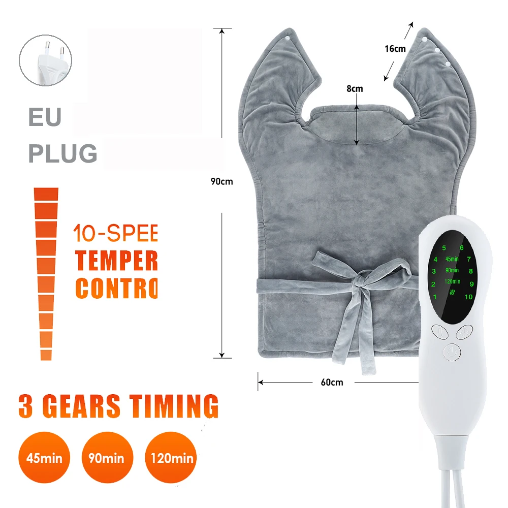Experience soothing comfort with this this electric heating pad, designed to envelop your body in gentle, customizable heat. Made from ultra-soft crystal velvet fabric in a calming light grey, it offers a plush, breathable, and skin-friendly touch that feels luxurious against your skin. With its sleek rectangular shape measuring 60 by 90 centimeters, this heating pad smoothly conforms to various body contours, making it perfect for relaxing your shoulders, back, abdomen, waist, legs, or neck. Effortlessly switch between 10 adjustable temperature levels and three timer settings, ensuring targeted relief tailored to your needs. Its elegant design combines functionality with a minimalist aesthetic, creating a warm, inviting atmosphere in your home and encouraging relaxation anytime you need it.