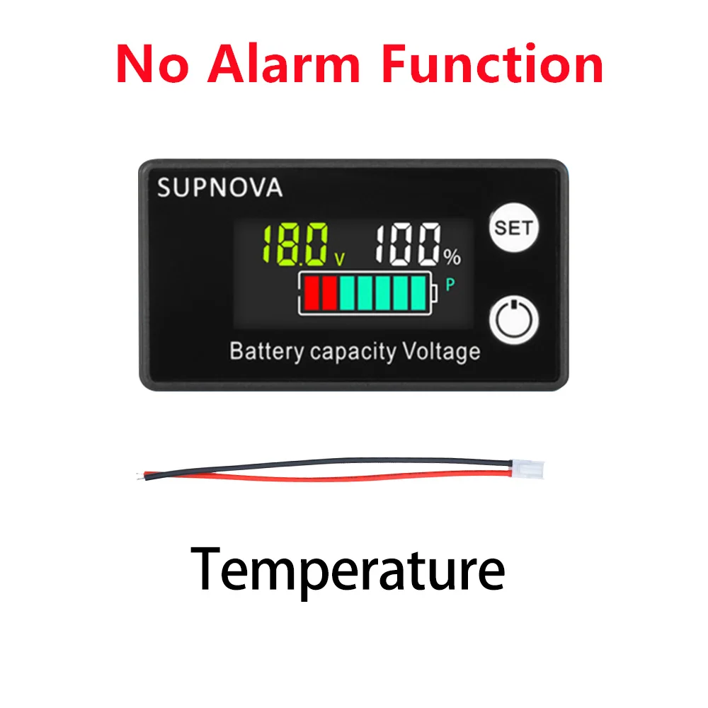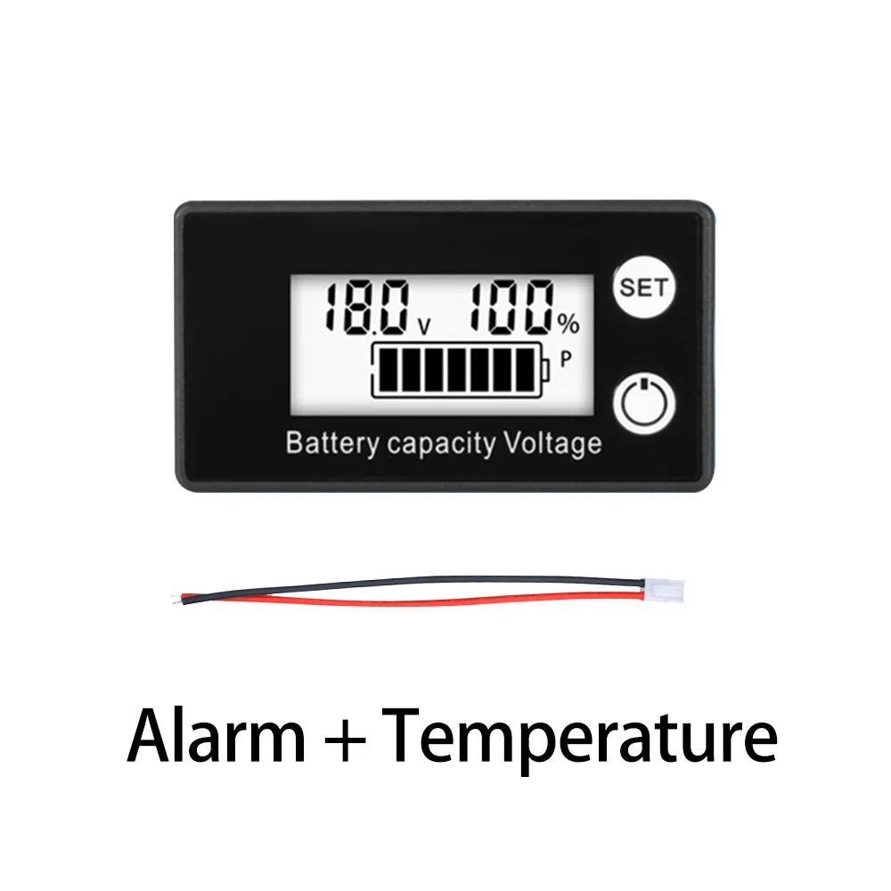 Ensure optimal battery performance with this sleek, waterproof LCD battery capacity indicator and voltage alarm, designed for DC 8V-100V systems. Featuring a large, backlit LCD display with white, blue, or green illumination, it clearly shows voltage (8V-100V) and capacity (0-100%) with an accuracy of ±1%. Its durable ABS construction, reverse polarity protection, and easy, quick installation make it compatible with 12V, 24V, 48V, and 72V lithium and lead-acid batteries. Operating efficiently within temperatures from -10°C to +70°C and humidity levels of 10-80%, it’s perfect for reliable, real-time battery monitoring in various applications.