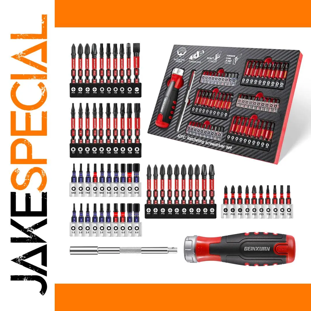 Imagine having the perfect screwdriver set at your fingertips for all around home repairs and professional tasks. This this 62-piece ratcheting screwdriver set combines precision, versatility, and durability in a sleek design with eye-catching red, black, and metallic finishes. The textured bi-material handle provides ergonomic comfort, while the hidden compartment and magnetic nut driver add clever storage solutions. The quick-change shank and the 36-tooth ratchet gear ensure effortless operation, making heavy-duty tasks less stressful. Whether you’re fixing furniture, appliances, or bicycles, this set offers a reliable, organized approach that saves time and effort. High-visibility markings help you quickly identify the right bit, turning any job into a straightforward, enjoyable experience.