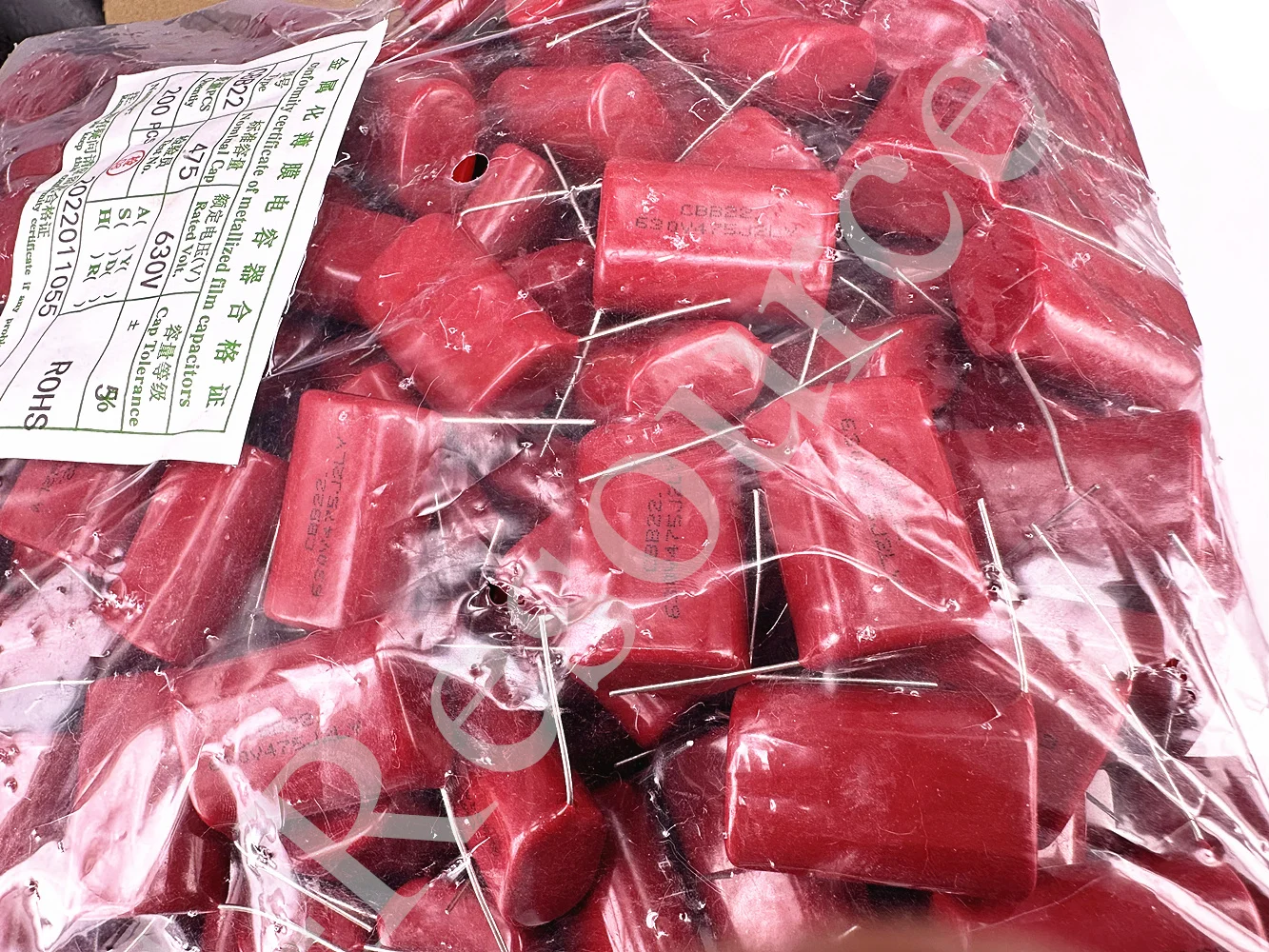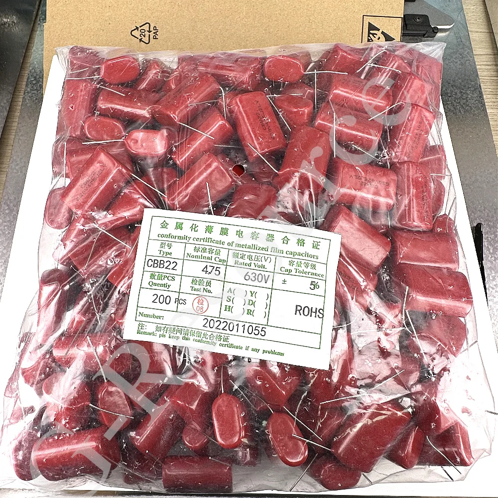 Discover the durability and sleek design of this this Takin Chip metallized polypropylene film capacitor. With a 630V voltage rating and a capacitance of 47.5µF (coded as 475J), it’s perfect for demanding electronic applications. Its vibrant red color and smooth, glossy rectangular surface create a modern aesthetic that blends function with style. Available in two sizes—P-27MM and P-30MM—each features rounded edges for a polished look, along with clear white markings for easy identification. The thin, straight metal leads extend downward from each end, making installation straightforward. Trust this capacitor to deliver stable performance in your device, combining technical precision with a sleek, professional appearance.