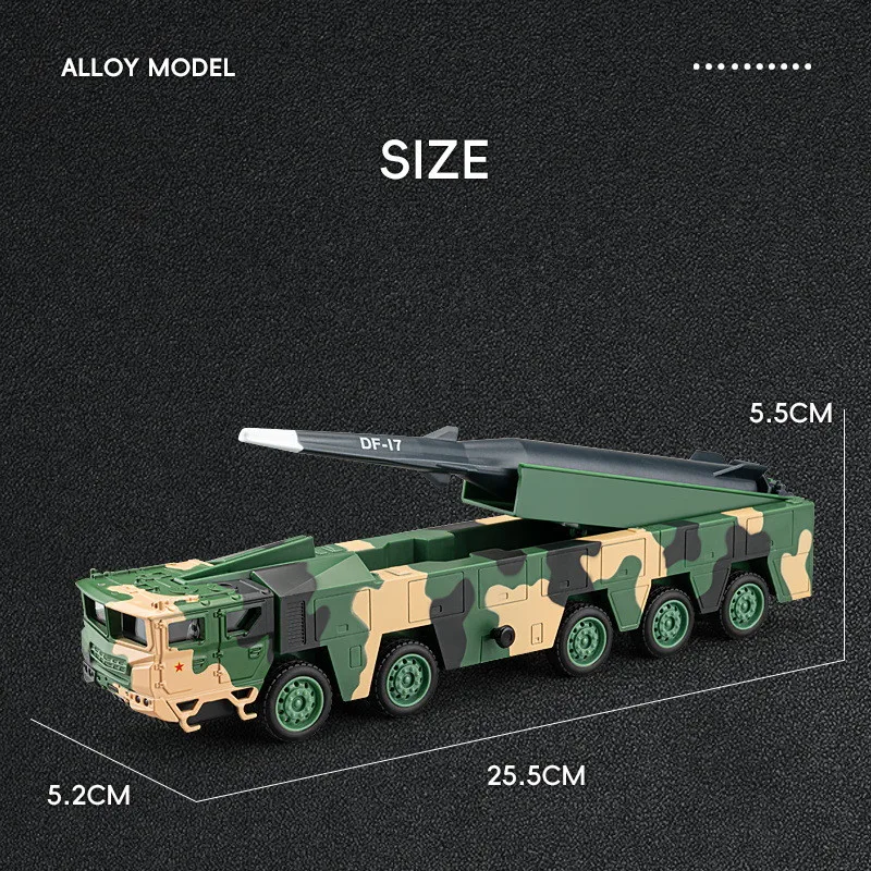 Bring your collection to life with this detailed 1:64 alloy Dongfeng missile transport vehicle model, featuring realistic sound and lighting effects in a military style design. Crafted from durable alloy and plastic, this scale model measures approximately 25.5cm by 5.2cm by 6.3cm, perfect for display or avid collectors. The vibrant yellow-green finish adds a striking touch, capturing the essence of military vehicles. With intricate detailing and a robust metal build, it offers an authentic experience. Suitable for enthusiasts aged 14 and above, this model is an ideal addition for those who appreciate high-quality, collectible military vehicles.