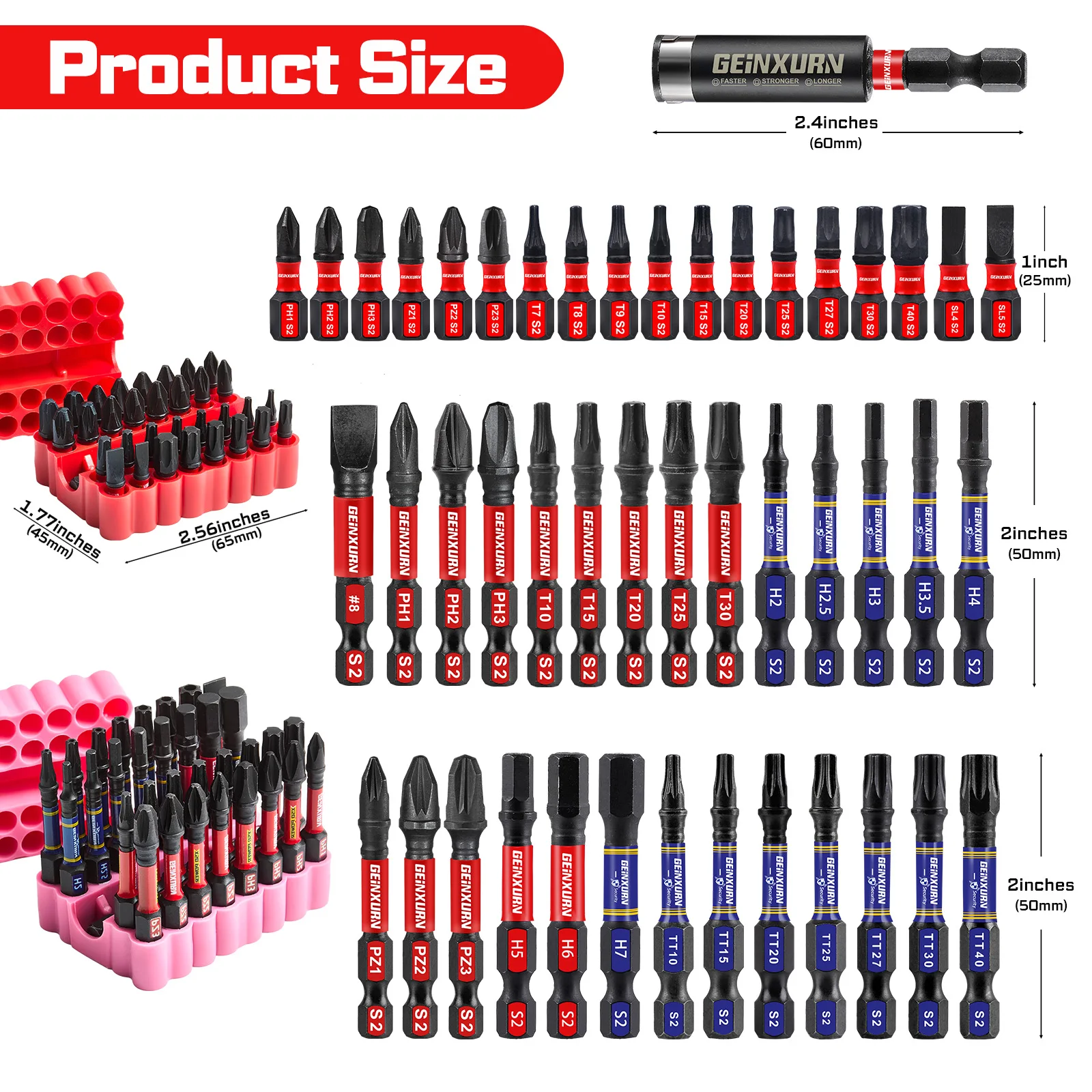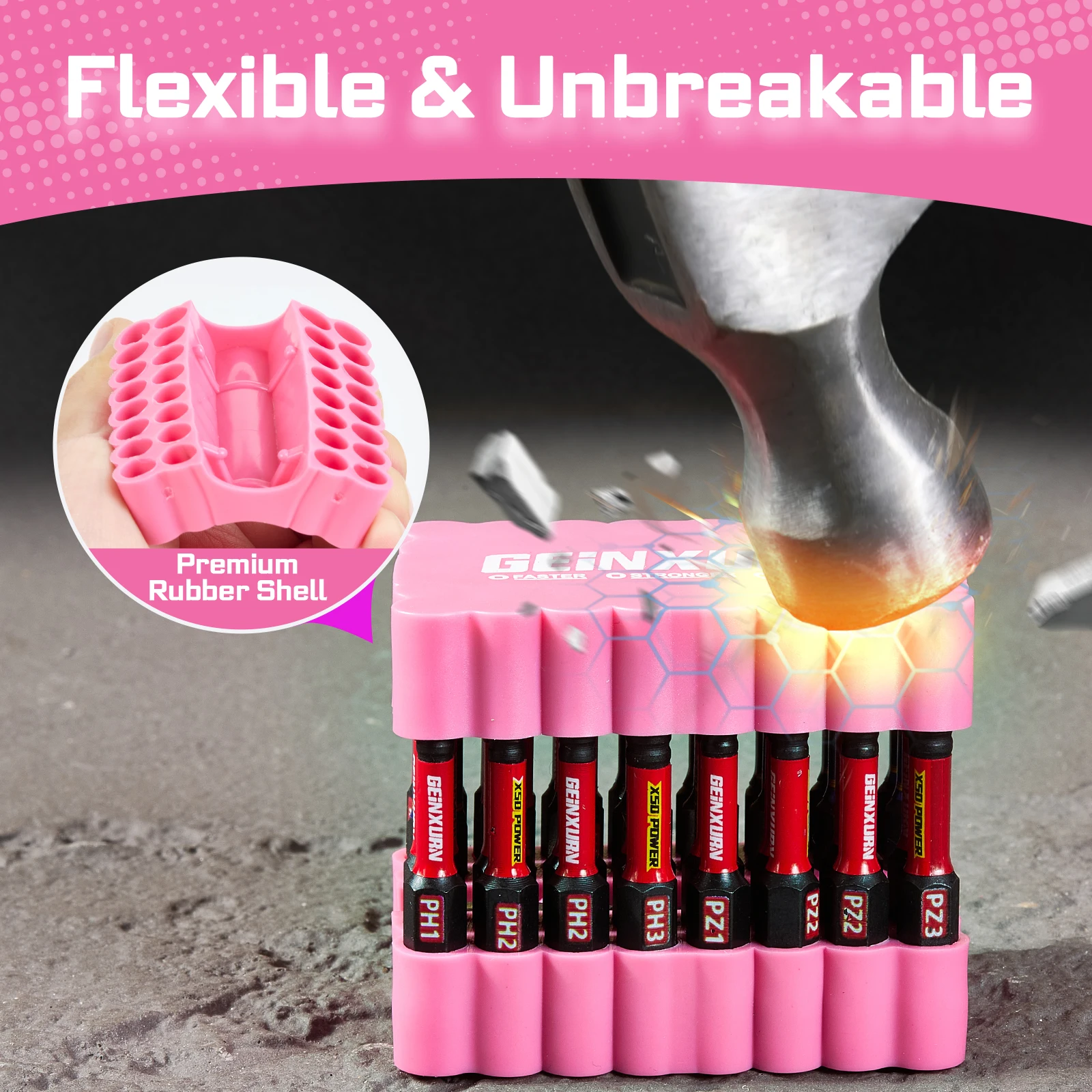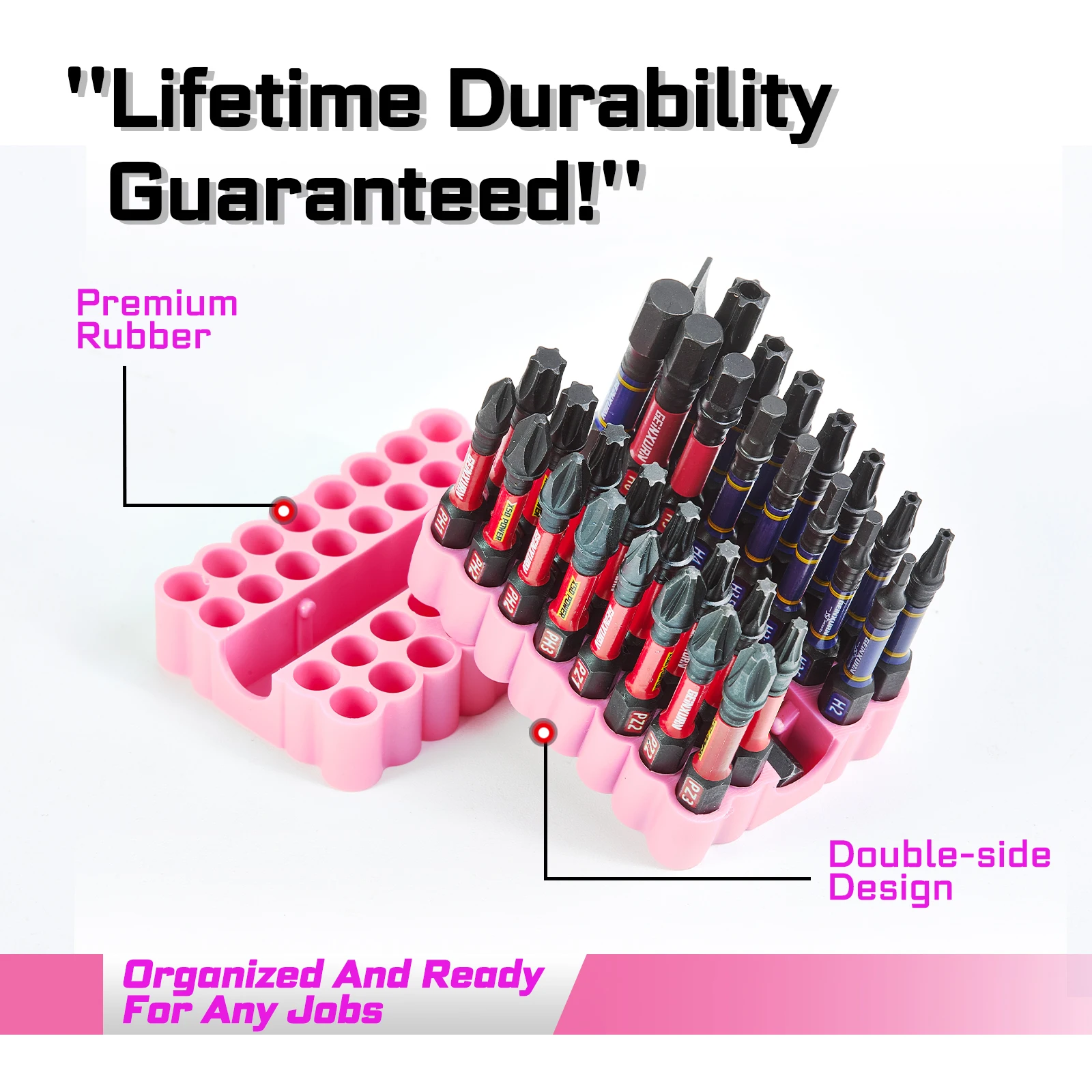 - The vibrant silicone holders, in pink and red with scalloped edges, keep your bits neat and easily accessible, while adding a visually appealing touch to your toolbox.