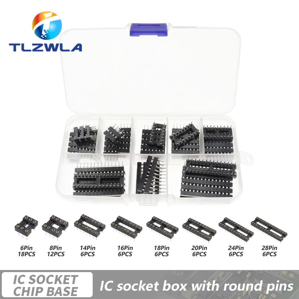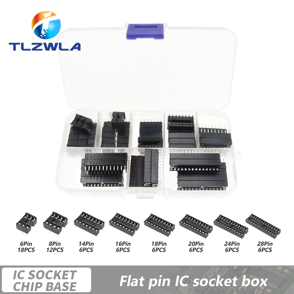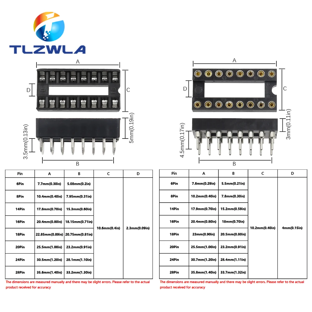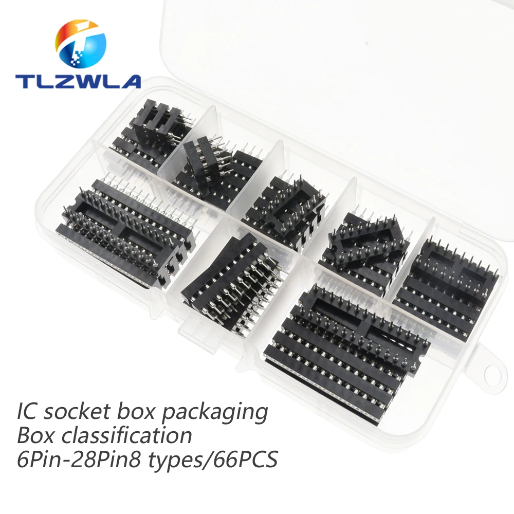 - Includes 66 solder-type DIP IC sockets with pin counts ranging from 6, 8, 14, 16, 18, 20, 24, and 28 pins, catering to various circuit needs and project sizes.