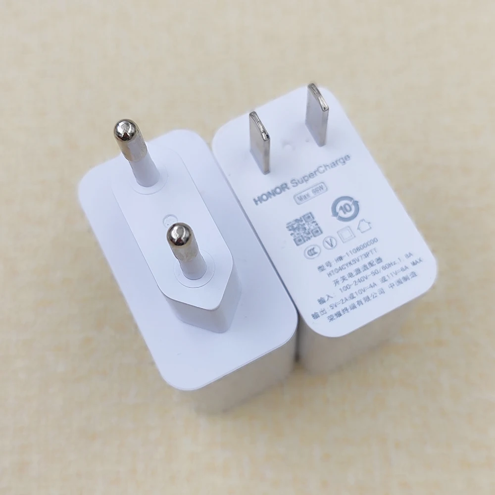 Experience fast and reliable charging with this 66W high-performance wall charger, compatible with EU and US outlets. Featuring a sleek white rectangular design with smooth edges, it includes a 100cm USB Type-C to Type-C data cable supporting 6A current for efficient power delivery. Supporting multiple fast-charging protocols such as Huawei FCP, Qualcomm Quick Charge, and Huawei Quick Charge, it delivers a maximum output power of 66W, ensuring quick recharging for compatible devices like Honor 90, 80, 70, Magic series, X9, and V series. Certified with safety standards including CE, FCC, RoHS, and UL, this modern, compact charger seamlessly combines portability, safety, and high-speed performance for your everyday tech needs.