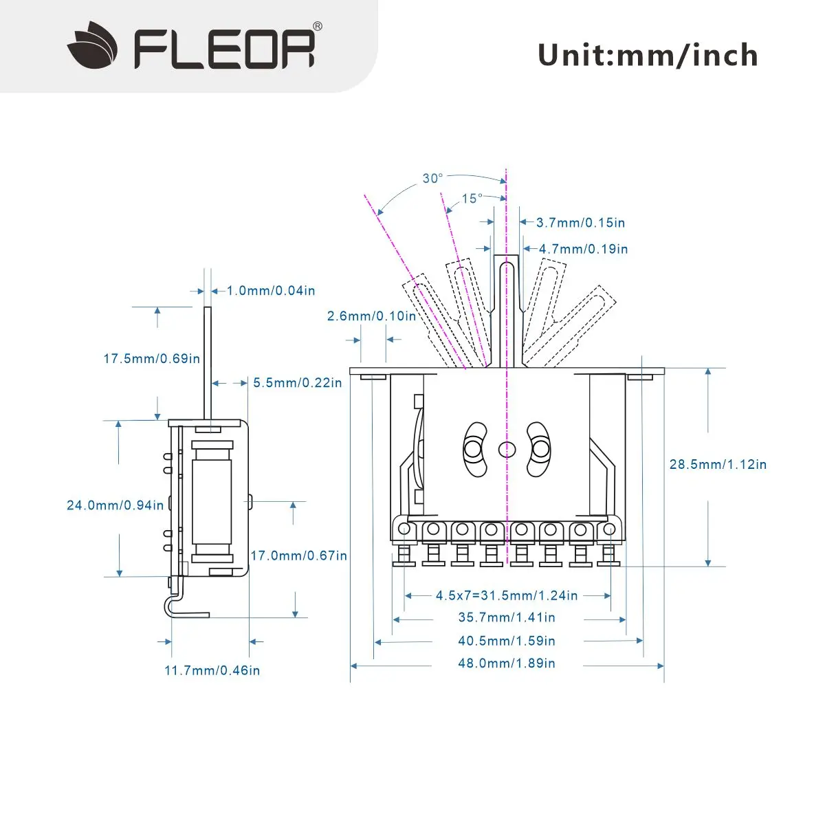 - Mounting holes are approximately 40.5 mm apart from center to center, facilitating standard installation on guitars and basses outside North America.
