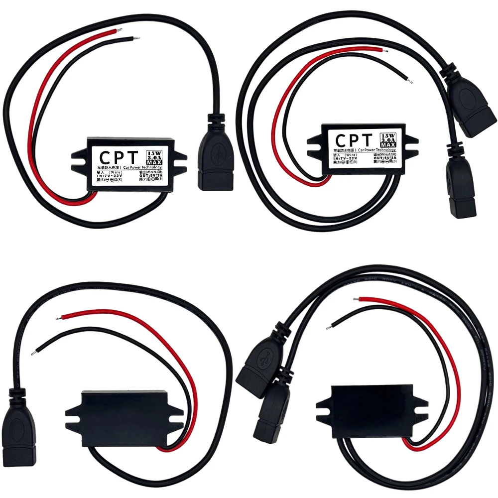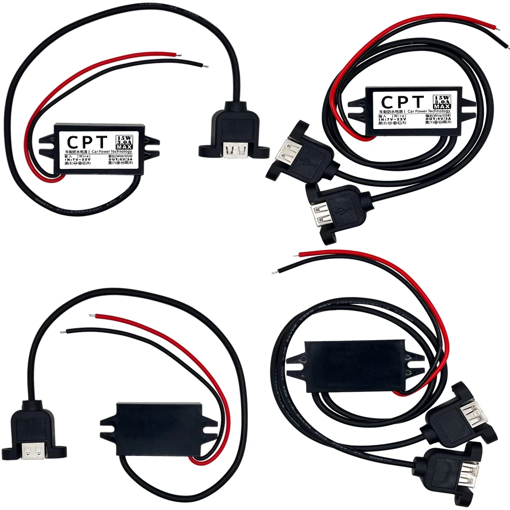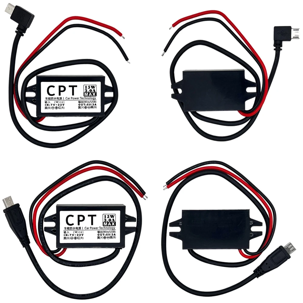 Experience reliable power conversion with this high-efficiency non-isolated buck converter module, designed to convert 7-22V DC input into a steady 5V DC output at up to 3A, providing 15W of power. Its sleek black rectangular casing features a white label with technical specifications, including a 96% maximum efficiency, 340Hz switching frequency, and an output ripple of just 3mV. This versatile module supports various USB configurations, such as single and double USB ports, Micro USB, Type-C, and DC 5.5mm connectors, making it ideal for automotive, electronic, and DIY projects where stable and efficient voltage regulation is essential.
