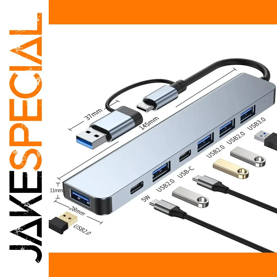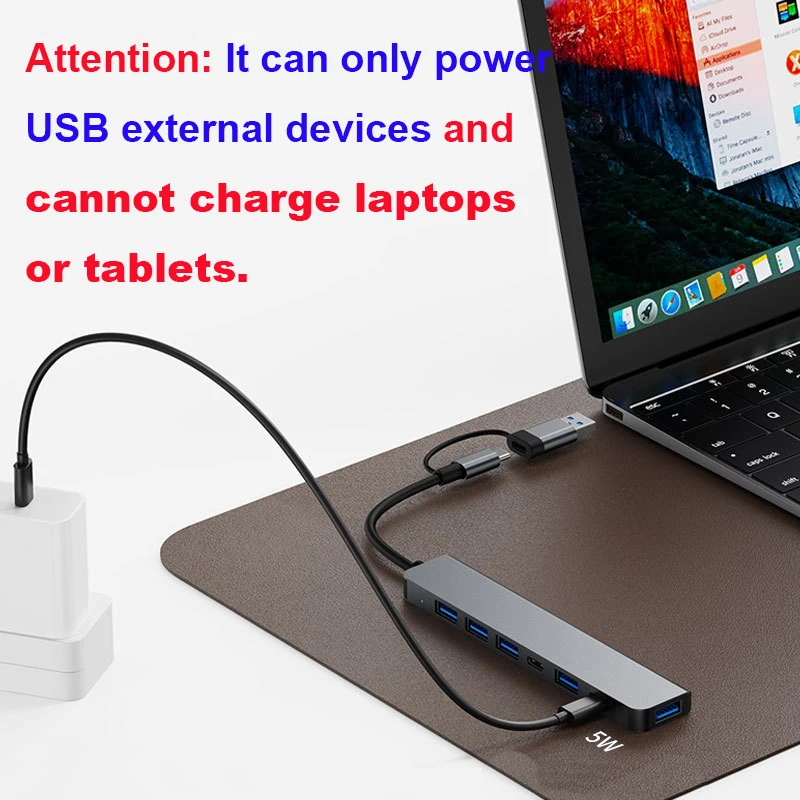 - Technical specifications include a total of 7 ports, with precise dimensions of approximately 145mm in length, 37mm in width, and 11mm in height, ensuring portability and convenience.
