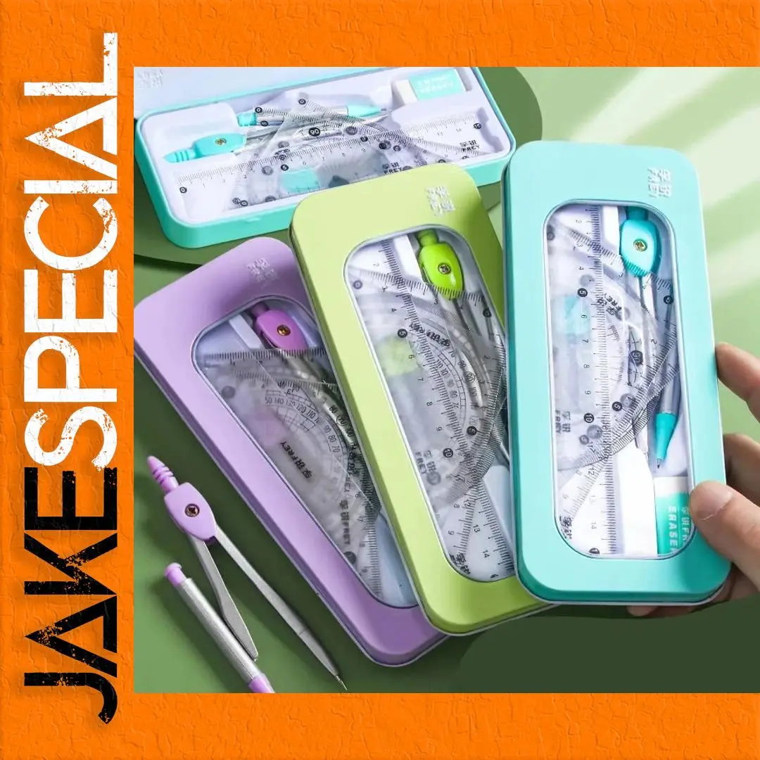 This 7-piece compass and ruler set is an essential tool for students, featuring vibrant color options in blue, green, and purple. Each set includes a sturdy triangle ruler, a clear protractor with visible degree markings, and a metallic compass designed for precision in drawing circles. Housed in a practical rectangular box with a transparent lid for easy access, this lightweight plastic math set is perfect for school use and exams. Organize all your essential geometric tools in style and enjoy seamless, effortless measurement and drawing, enhancing your educational experience.