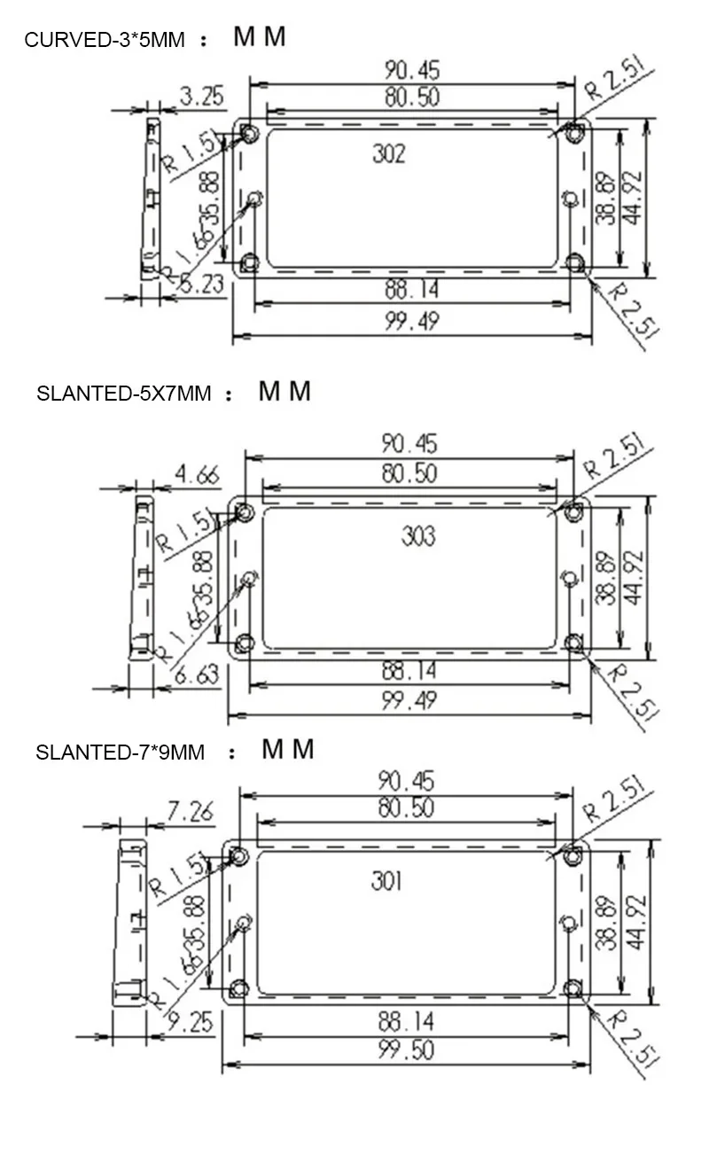 - Three side profile options—curved at 3x5mm, slanted at 5x7mm, and slanted at 7x9mm—allow for customized mounting angles and tailored aesthetic preferences.