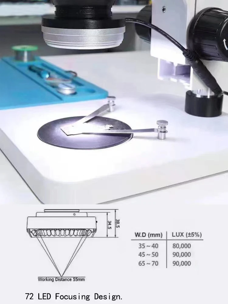 - Includes 72 high-brightness LED beads with a 50mm diameter, providing intense, uniform illumination for detailed microscopic work.