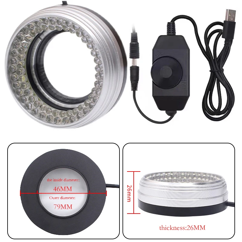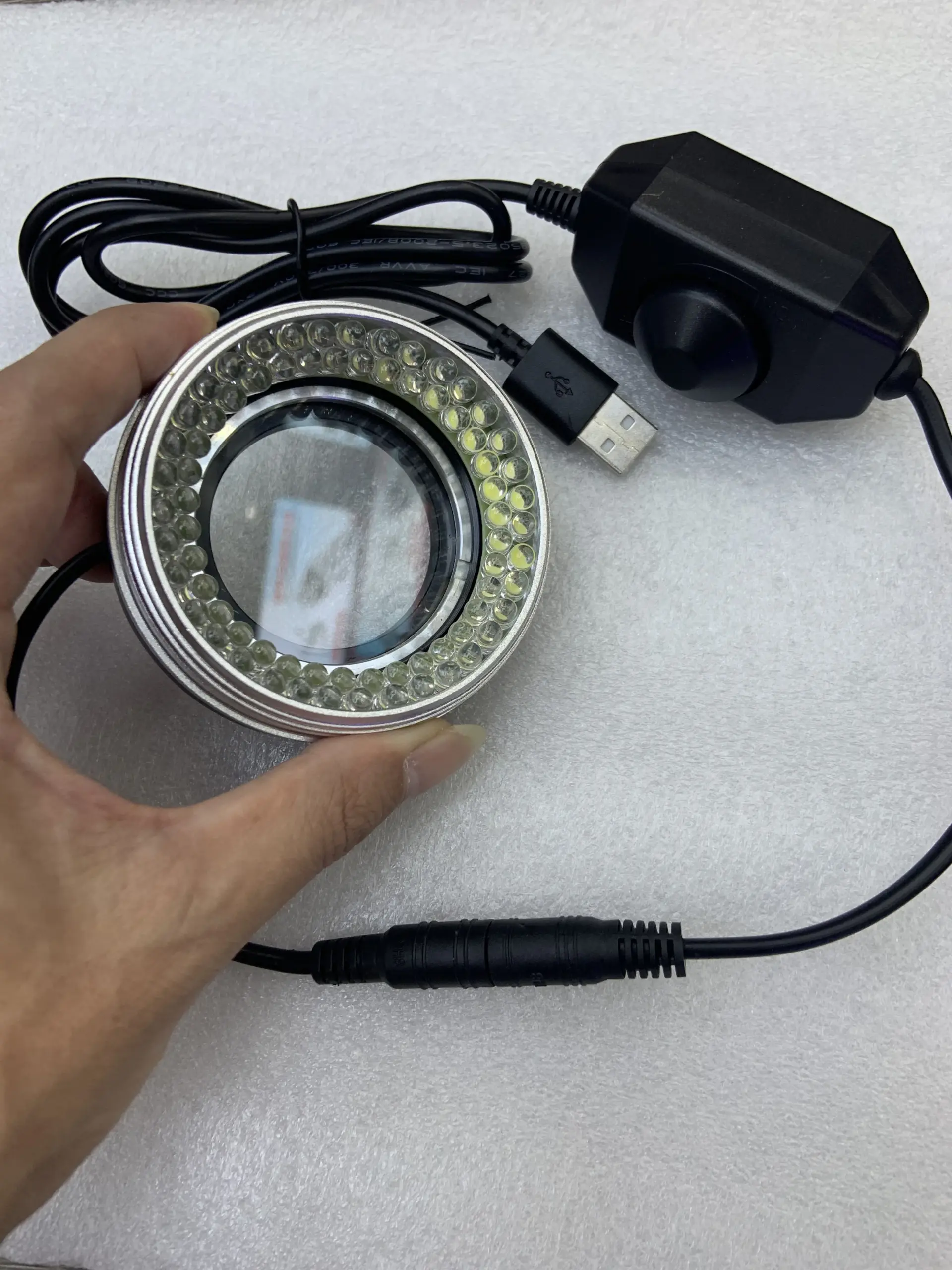Experience professional illumination with this high-quality ring-shaped LED light designed for industrial stereo microscopes. Featuring 72 high-brightness LED beads evenly arranged within a sleek, silver-colored metallic frame, it provides uniform, adjustable lighting to enhance your precision tasks. The 50mm diameter ensures a perfect fit for binocular and trinocular microscopes, while the transparent outer cover diffuses light evenly. Built with durability in mind, it includes anti-oil dust lenses that resist contaminants, ensuring long-lasting clarity and optimal performance. Compact yet powerful, this LED ring light elevates your inspection and maintenance work, resulting in better accuracy and efficiency in any technical setting.