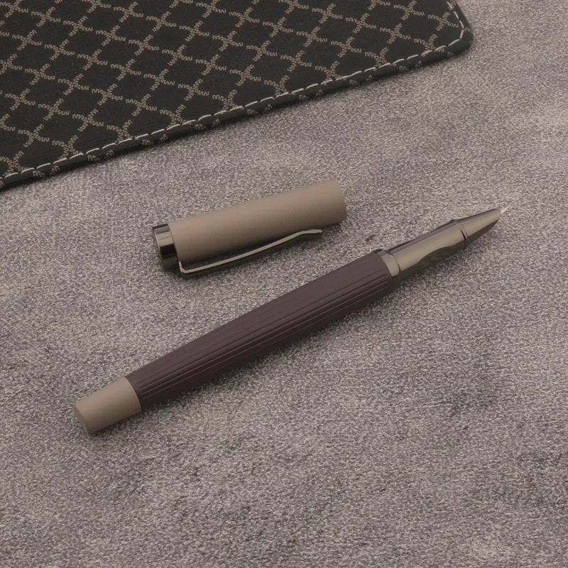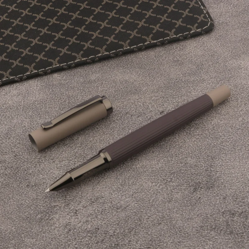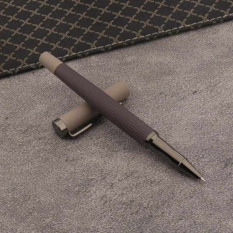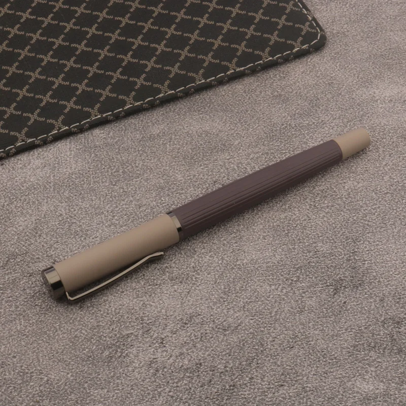 Imagine elevating your writing experience with this stylish, modern fountain pen. Crafted with a matte gray metal body, it exudes professionalism and understated elegance. The subtle vertical grooves on the barrel provide excellent grip, making every stroke comfortable and controlled. The stainless steel nib, with a fine 0.38mm tip, ensures precise and clean writing—ideal for finance and detailed note-taking. The matching cap features a shiny metallic band and a polished clip that adds a refined touch. Versatile and durable, this pen seamlessly combines functionality with sophistication, making it a perfect addition to your stationery collection for serious applications, or for those who appreciate quality tools that stand out in a professional environment.