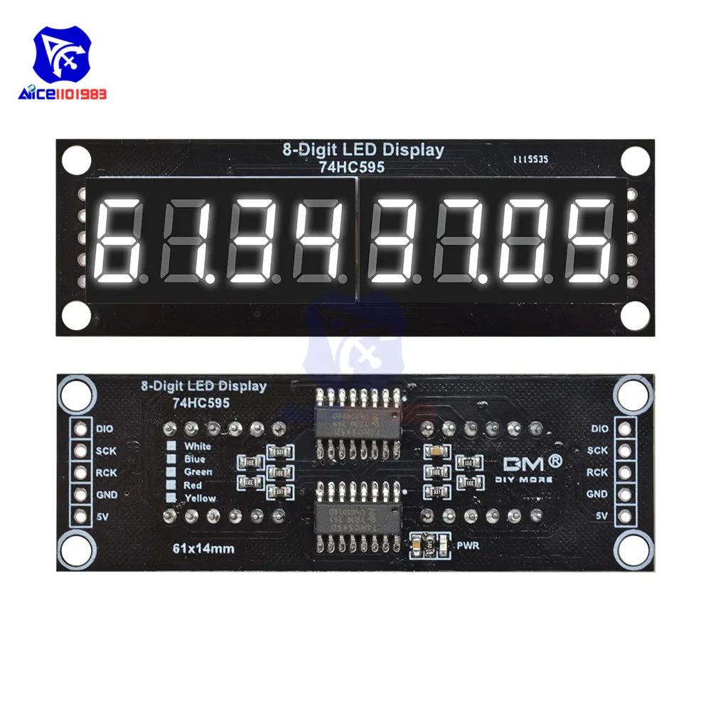 Imagine effortlessly integrating a vibrant, precise 8-digit 7-segment display into your electronic projects. This sleek module features a conspicuous 0.36-inch digit height and offers five luminous color options: white, red, yellow, green, and blue. Each digit includes a decimal point that can be controlled independently, giving you full customization over your display outputs. Compact and efficient, it measures just 61mm by 14mm, perfect for space-constrained applications. Powered by the reliable 74HC595 shift register chip, this product ensures accurate and stable digital display management. Whether for DIY projects, prototypes, or professional setups, this module lets you create eye-catching visual displays with ease and confidence.