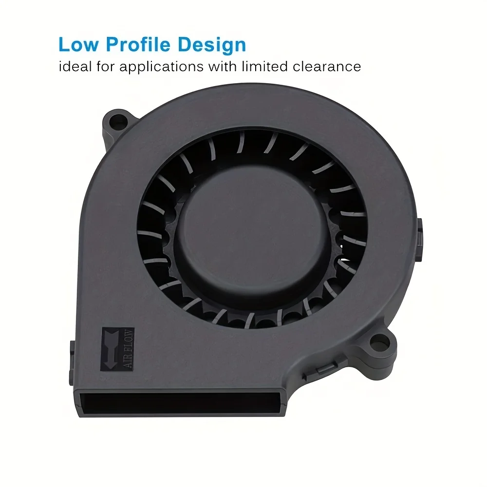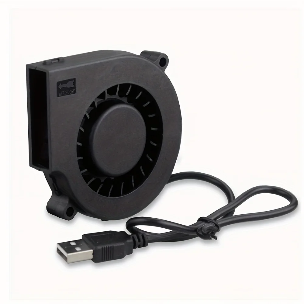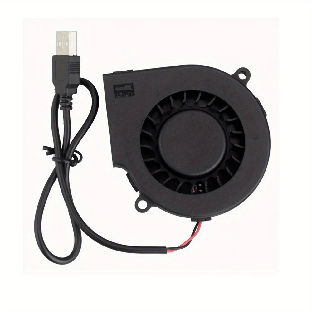 Experience the efficiency of this 75mm USB Fan Cooling Turbo Blower, meticulously designed for optimal airflow and heat dissipation. With its compact size of 75x75x15 mm, this blower ensures you stay cool in various electronic applications, from cooling extruders in 3D printers to powering up your PC CPU. The matte black housing not only offers a modern look but also features dedicated airflow vents for maximum performance. Imagine the ease of utilizing this effective and reliable device at your workstation, enhancing productivity while maintaining a serene working environment.