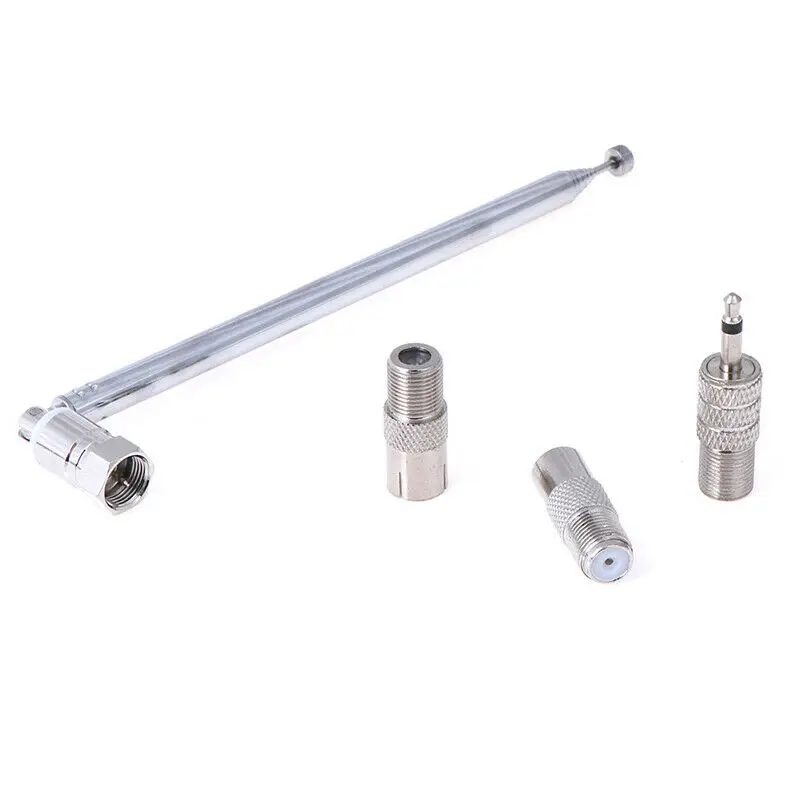 Enhance your radio reception with this sleek 76cm telescopic antenna, crafted from durable steel and featuring a seven-section extendable design that offers a modern, polished look. Operating within 86-106 MHz, it provides a gain of 3.5 dB and an output impedance of 75Ω, supporting up to 10W power at 5V. The package includes one silver-finished F connector antenna and versatile adapters—F type to TV female/male and 3.5mm male—ensuring compatibility with various devices. Perfect for users seeking a high-performance, minimalist antenna that combines technical precision with contemporary style, elevating your audio and TV experience with reliable signal reception.