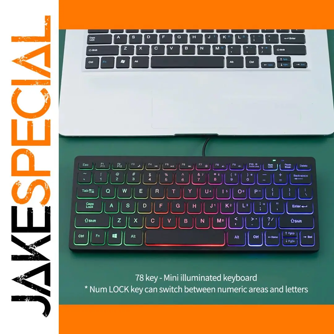 Experience a new level of typing comfort with this 78-key Backlit Wired Keyboard, designed for both laptops and tablets. Featuring a sleek and ultra-slim profile, this keyboard is perfect for both practical office use and casual gaming. The 290 x 120 x 35 mm compact size means you can easily carry it anywhere, while the durable plastic construction ensures long-lasting use. Enjoy the vibrant multi-colored backlighting that enhances visibility in low-light conditions, providing a blend of style and functionality that complements your modern workspace.