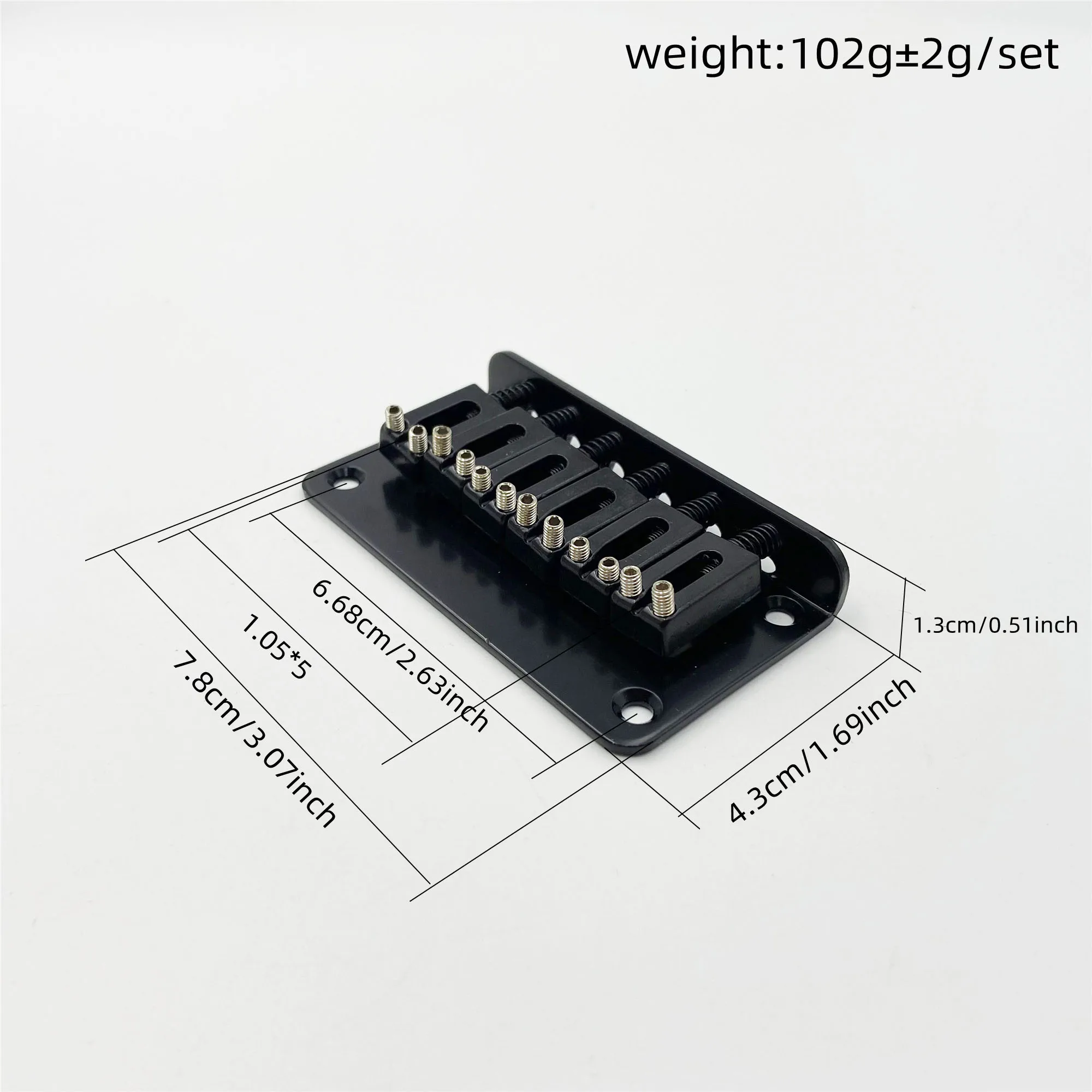Imagine upgrading your guitar with this stylish and durable 78mm 6-string guitar flat string bridge. Crafted from high-quality metal, it features a polished chrome silver finish or electrophoretic black to suit your aesthetic. Its rectangular shape with rounded edges blends modern design with stability, providing an excellent foundation for your instrument. The precise arrangement of six adjustable saddles, screws, and fine-tuning components ensures optimal string positioning for enhanced tone and playability. Weighing around 102 grams per set, it's lightweight yet sturdy, promising long-lasting performance. Easy to install, this bridge is ideal for children's or electric guitars, giving you the flexibility of personalized sound adjustments. Elevate your musical experience with this reliable accessory, crafted for the discerning guitarist.